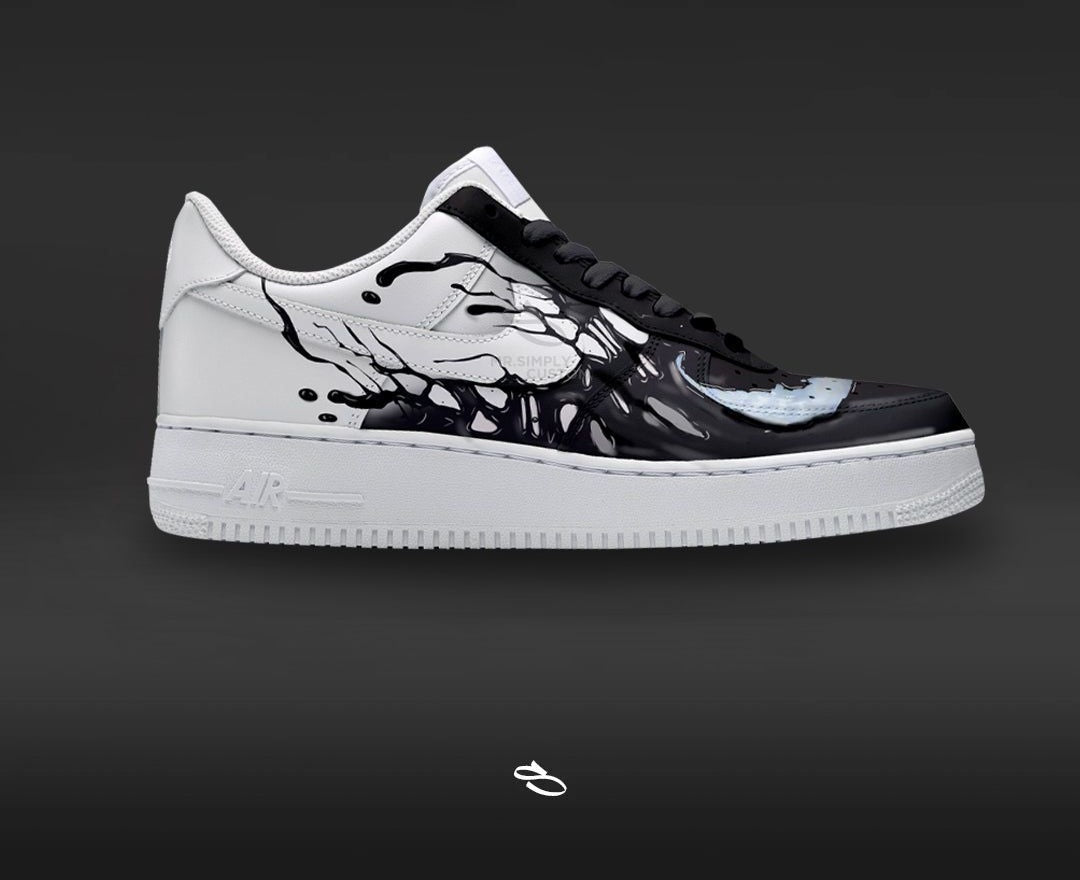 Introducing the Venom- a unique and stylish custom design of the classic Nike Air Force 1, Air Jordan and Yeezy. With intricate details inspired by the popular character, this shoe is sure to make a statement. Enjoy the comfort and functionality of Nike while proudly displaying Venom.