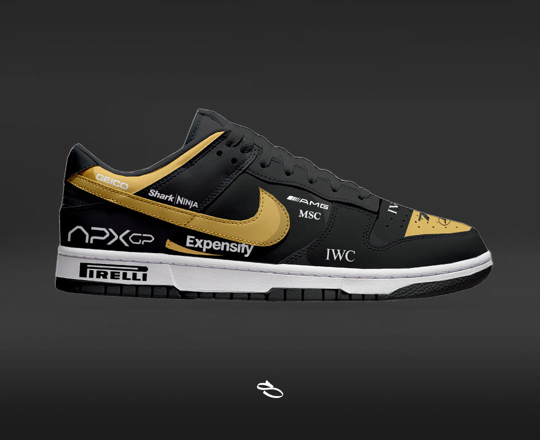 Introducing the APX GP - F1 Movie - a unique and stylish custom design of the classic Dunk low & Air Jordan 1. With intricate details inspired by the popular F1 LIVERY, this shoe is sure to make a statement. Enjoy the comfort and functionality of Nike while proudly displaying APX GP - F1 Movie