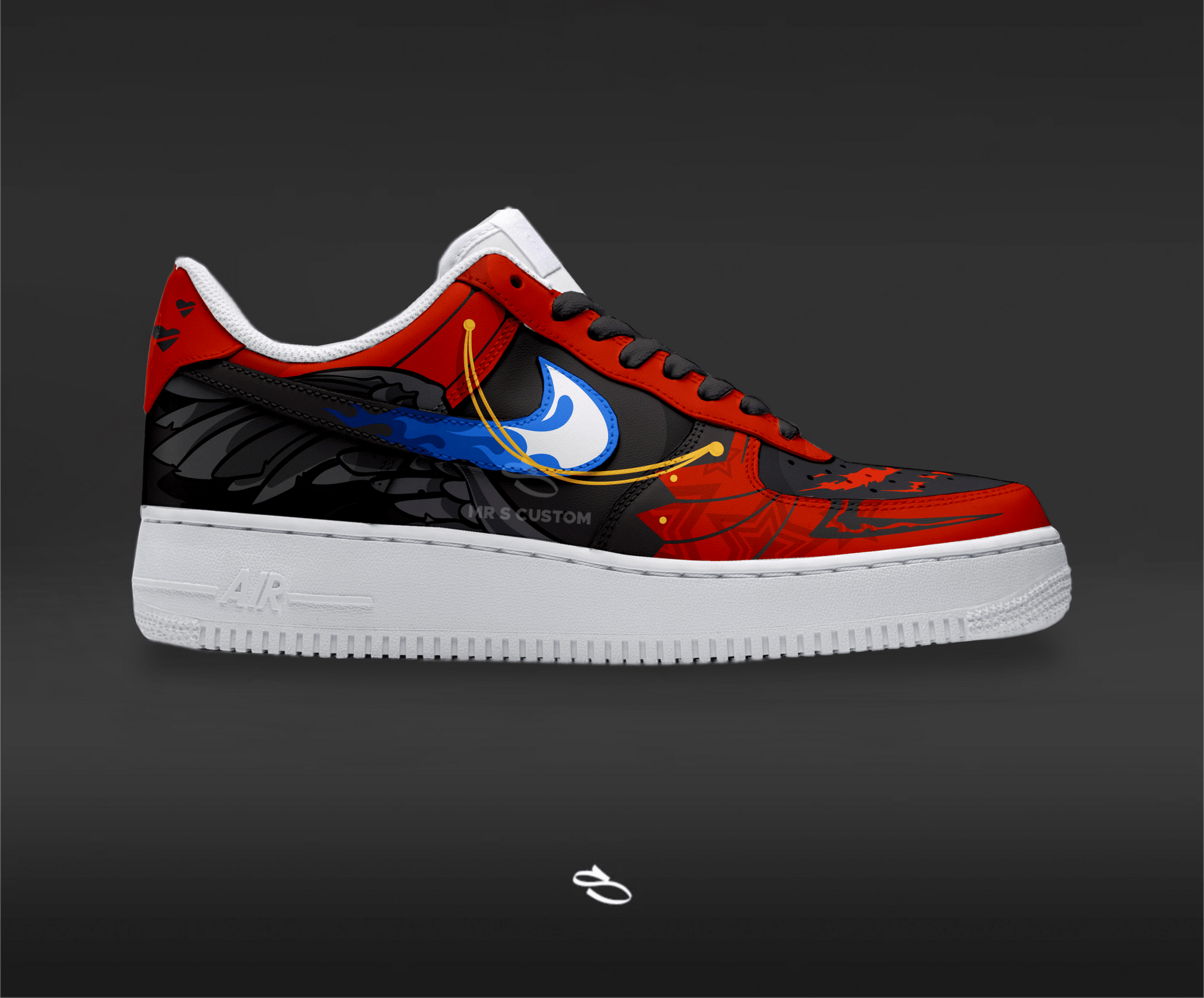 Introducing the Persona 5 Collections - a unique and stylish custom design of the classic Nike Air Force 1. With intricate details inspired by the popular game series, this shoe is sure to make a statement. Enjoy the comfort and functionality of Nike while proudly displaying Persona 5.