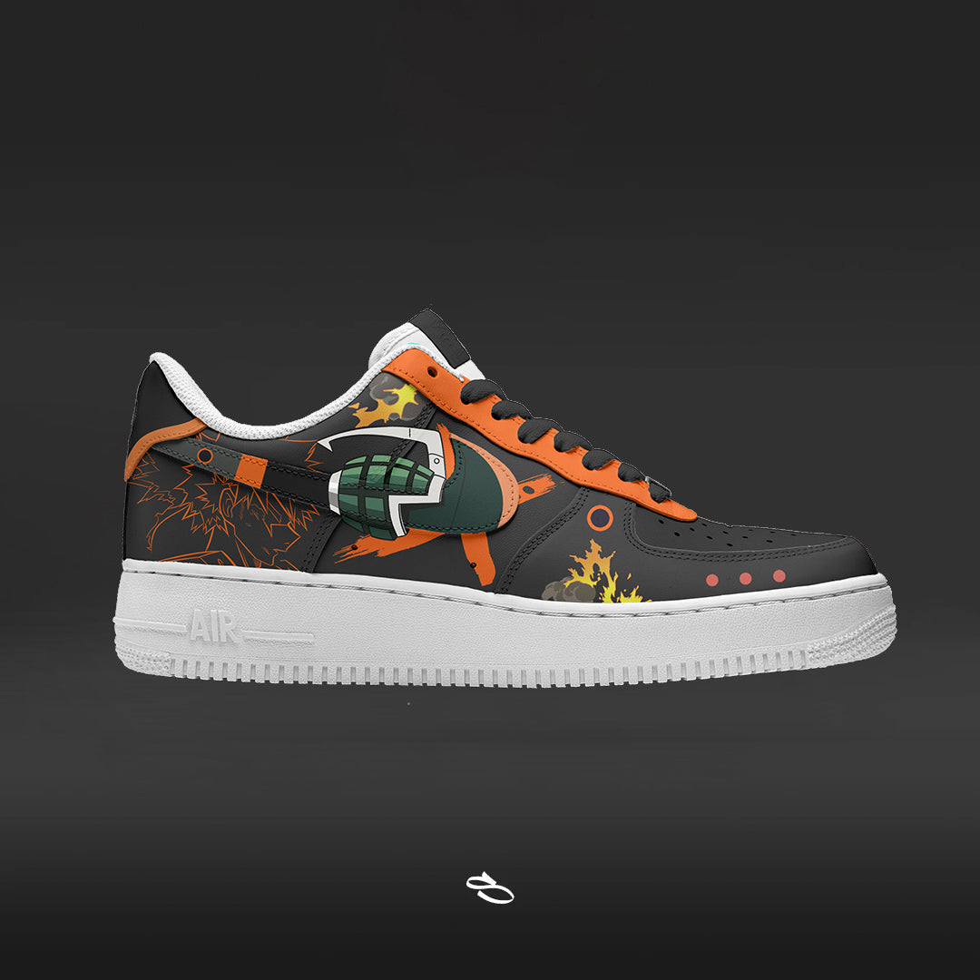 Introducing the Bakugo My Hero Academia - a unique and stylish custom design of the classic Nike Air Force 1. With intricate details inspired by the popular anime series, this shoe is sure to make a statement. Enjoy the comfort and functionality of Nike while proudly displaying Bakugo My Hero Academia.