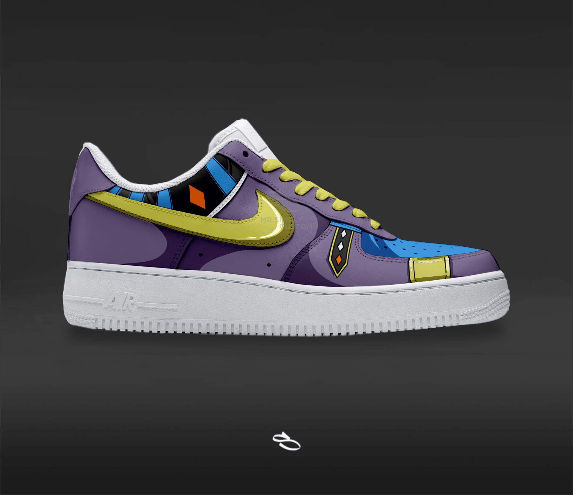 Introducing the Beerus Dragon Ball - a unique and stylish custom design of the classic Nike Air Force 1. With intricate details inspired by the popular anime series, this shoe is sure to make a statement. Enjoy the comfort and functionality of Nike while proudly displaying Beerus Dragon Ball.