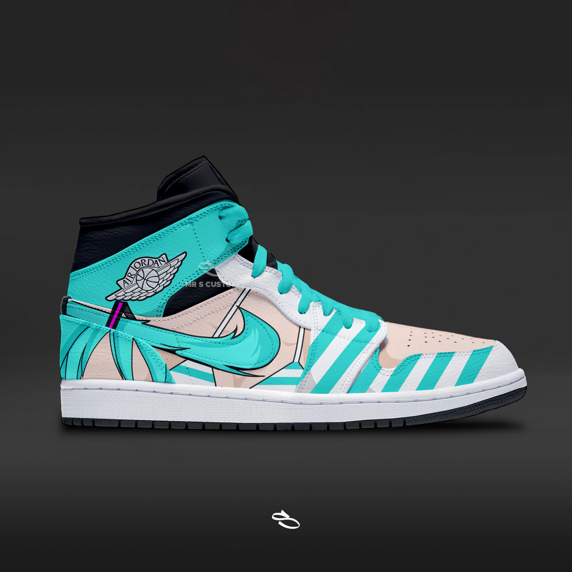 Introducing the Hatsune Miku - a unique and stylish custom design of the classic Nike Air Force 1. With intricate details inspired by the popular anime series, this shoe is sure to make a statement. Enjoy the comfort and functionality of Nike while proudly displaying Hatsune Miku.