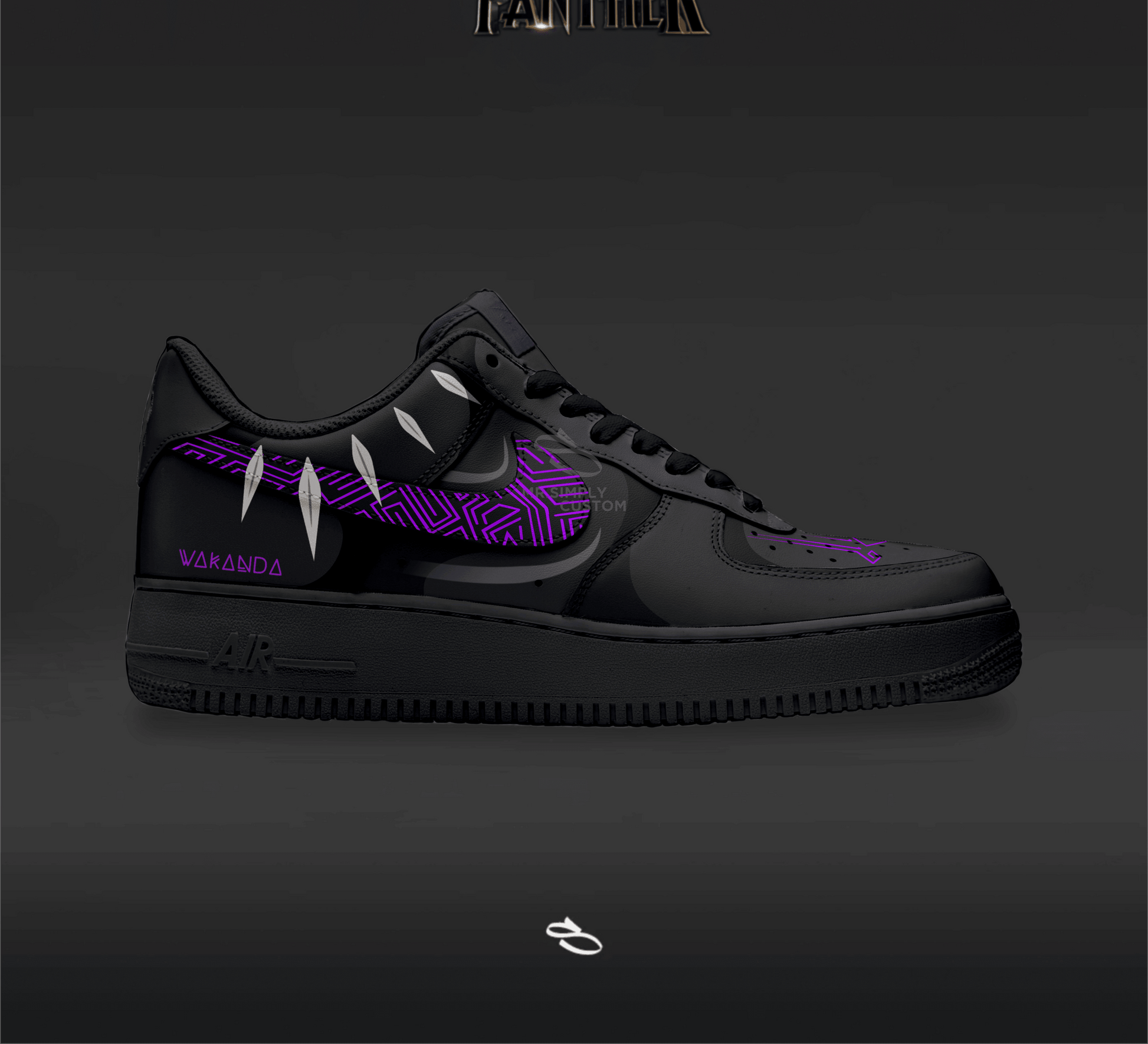 Introducing the T'Challa Black Panther - a unique and stylish custom design of the classic Nike Air Jordan 1, Air Force 1 & Yeezy. With intricate details inspired by the popular movie, this shoe is sure to make a statement. Enjoy the comfort and functionality of Nike while proudly displaying T'Challa Black Panther.