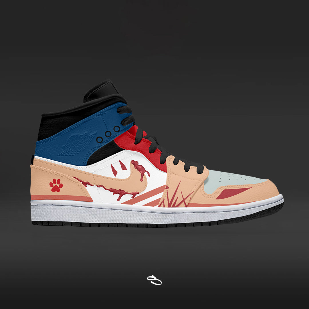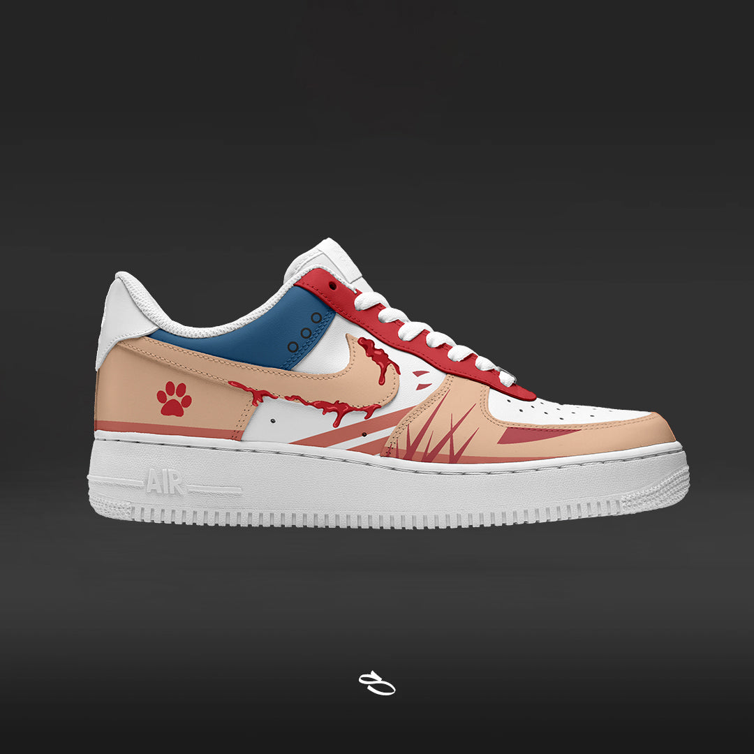 Introducing the Power Chainsaw Man - a unique and stylish custom design of the classic Nike Air Force 1. With intricate details inspired by the popular anime series, this shoe is sure to make a statement. Enjoy the comfort and functionality of Nike while proudly displaying Power Chainsaw Man.
