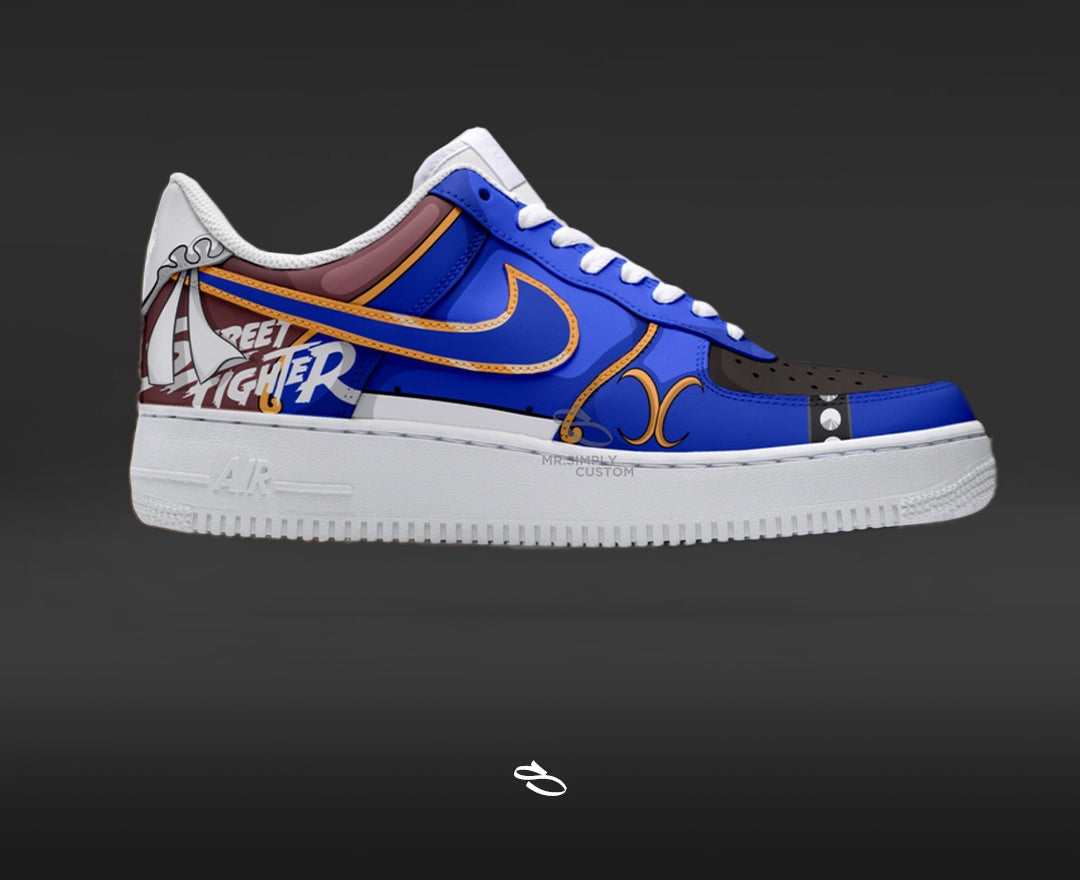 Introducing the Street Fighter - a unique and stylish custom design of the classic Dunk low. With intricate details inspired by the popular game series, this shoe is sure to make a statement. Enjoy the comfort and functionality of Nike while proudly displaying Street Fighter.