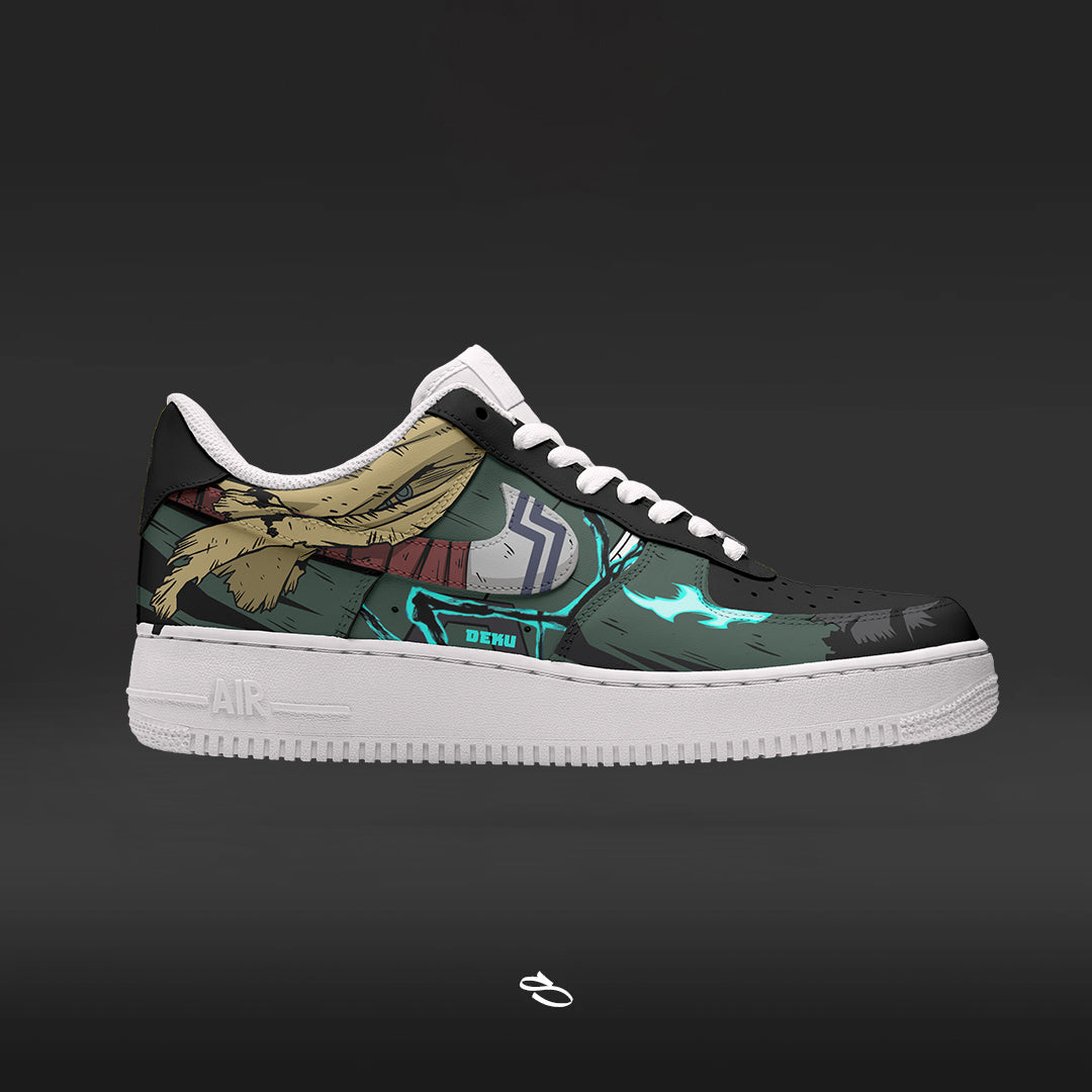 Introducing the Deku My Hero Academia - a unique and stylish custom design of the classic Nike Air Force 1. With intricate details inspired by the popular anime series, this shoe is sure to make a statement. Enjoy the comfort and functionality of Nike while proudly displaying Deku My Hero Academia.