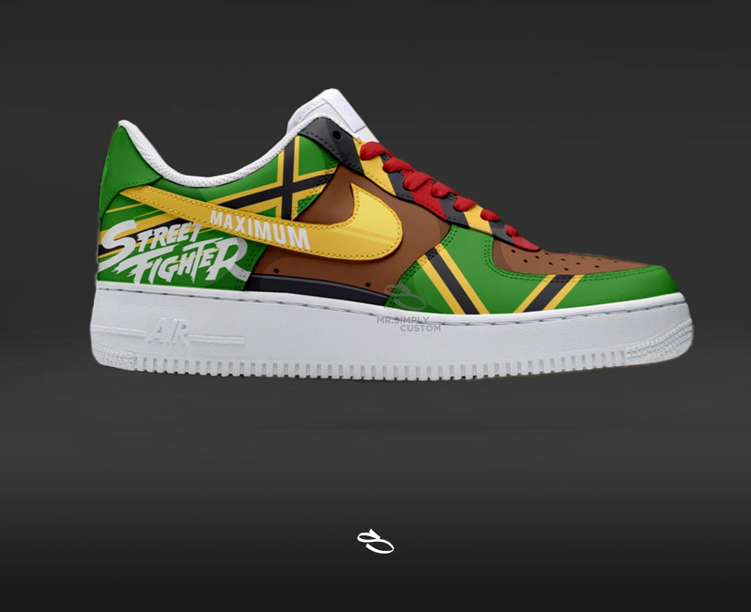 Introducing the Street Fighter - a unique and stylish custom design of the classic Dunk low. With intricate details inspired by the popular game series, this shoe is sure to make a statement. Enjoy the comfort and functionality of Nike while proudly displaying Street Fighter.