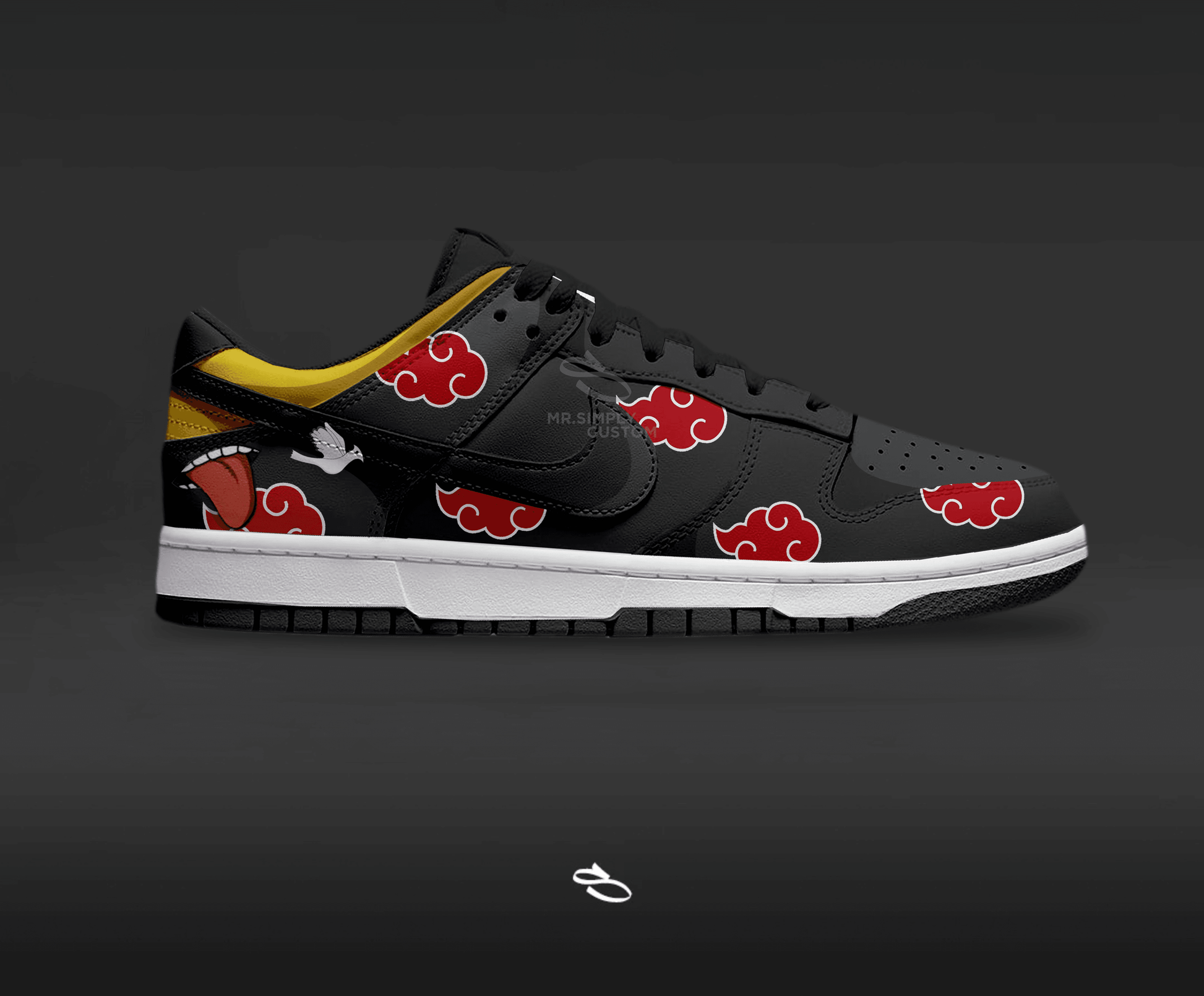 Introducing the Akatsuki Shoes Custom Collection - a unique and stylish custom design of the classic Dunk low. With intricate details inspired by the popular anime series, this shoe is sure to make a statement. Enjoy the comfort and functionality of Nike while proudly displaying Deidara Akatsuki.