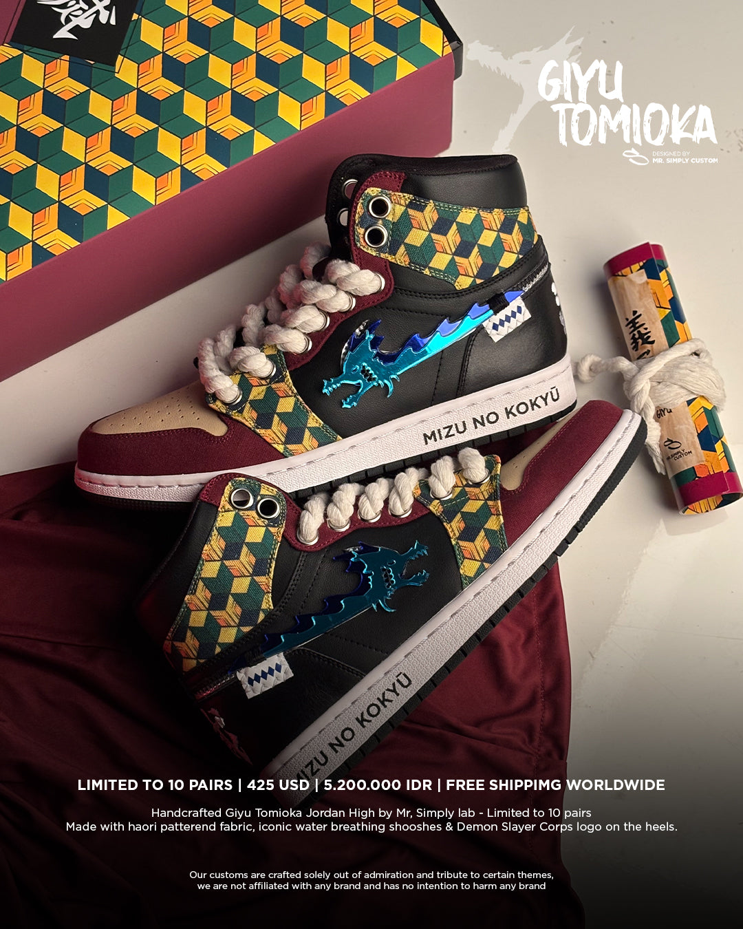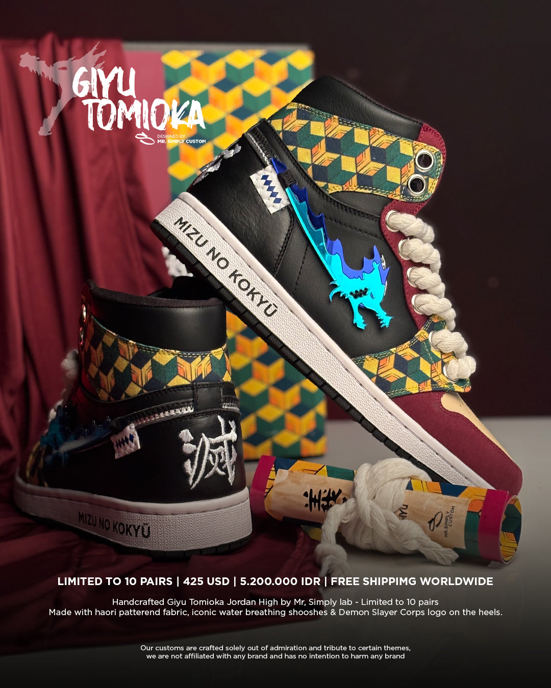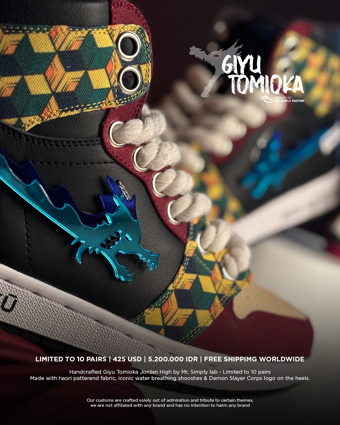 Step into the realm of heroes with the Demon Slayer – Giyu Tomioka Jordan High, a one-of-a-kind sneaker that fuses anime legacy with premium streetwear design. Crafted by Mr. Simply Lab, this custom creation pays tribute to Giyu Tomioka, the beloved protagonist of Demon Slayer, while embodying the timeless silhouette of the Jordan High.