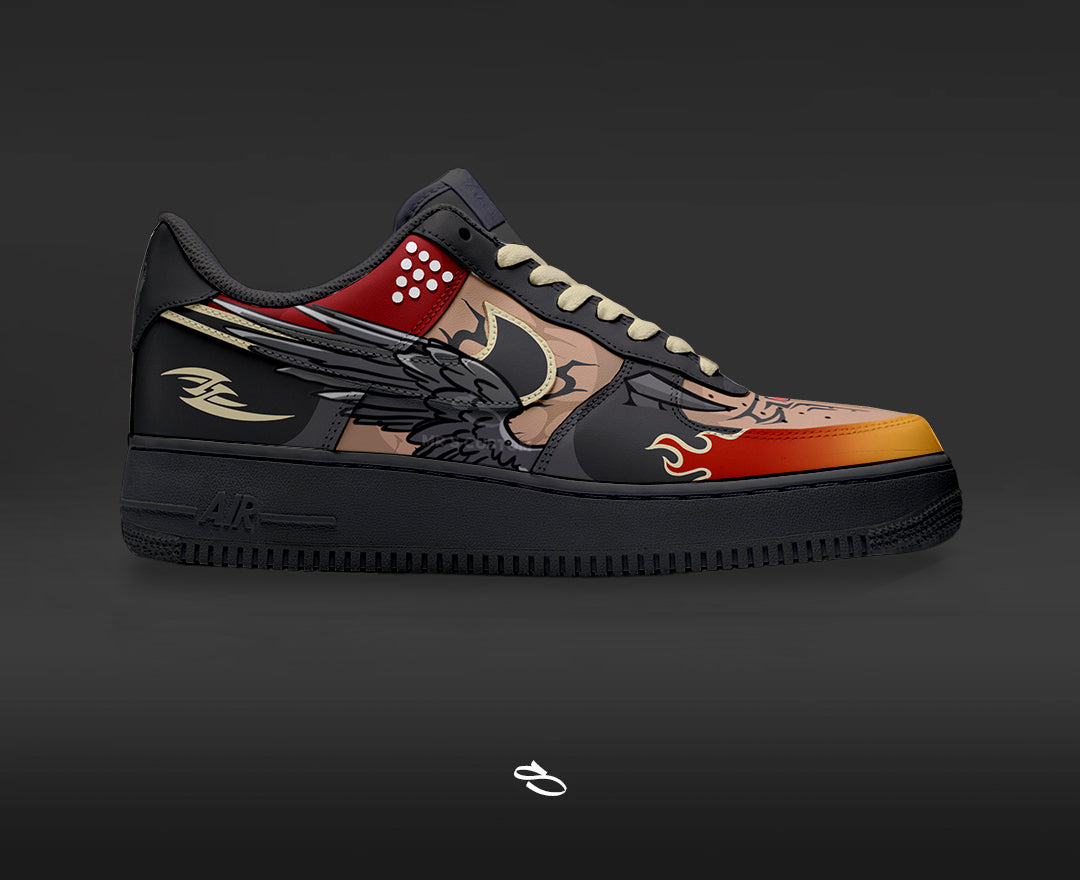 Introducing the Tekken - a unique and stylish custom design of the classic Nike Air Force 1. With intricate details inspired by the popular anime series, this shoe is sure to make a statement. Enjoy the comfort and functionality of Nike while proudly displaying Tekken.