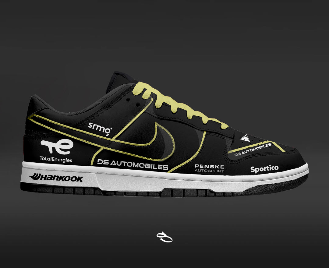 Introducing the Formula e Livery - a unique and stylish custom design of the classic Dunk low & Air Jordan 1. With intricate details inspired by the popular F1 LIVERY, this shoe is sure to make a statement. Enjoy the comfort and functionality of Nike while proudly displaying Formula e Livery.