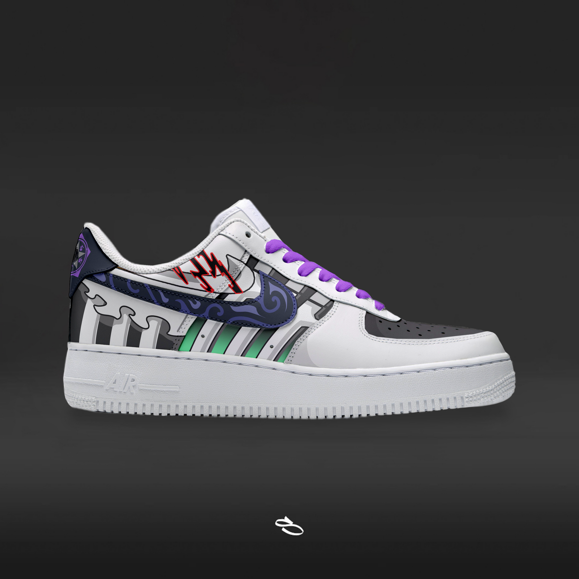 Introducing the One Piecen - a unique and stylish custom design of the classic Nike Air Force 1. With intricate details inspired by the popular franchise, this shoe is sure to make a statement. Enjoy the comfort and functionality of Nike while proudly displaying One Piece.