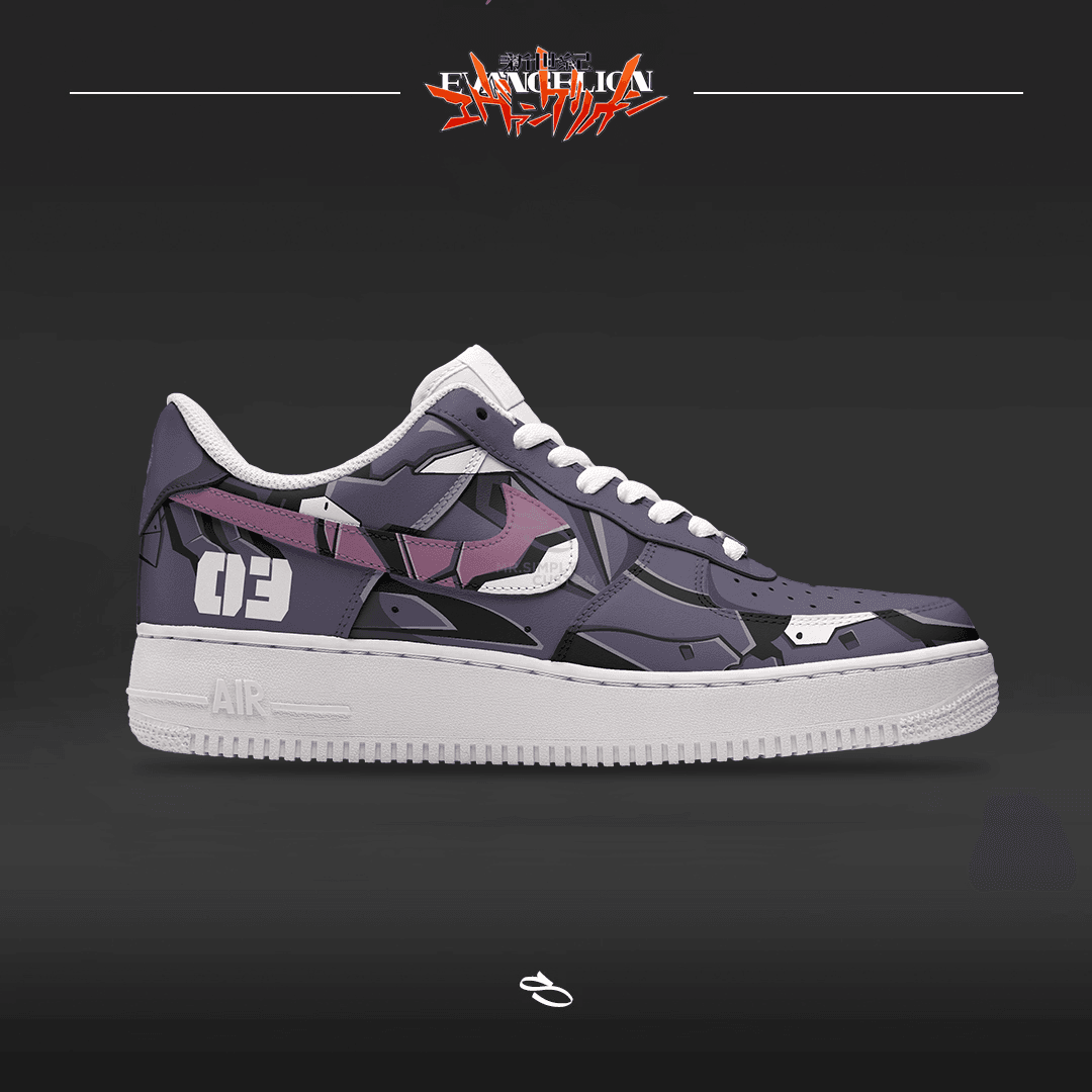 Introducing the Evangelion Unit-03 - a unique and stylish custom design of the classic Nike Air Force 1. With intricate details inspired by the popular anime series, this shoe is sure to make a statement. Enjoy the comfort and functionality of Nike while proudly displaying Evangelion Unit-03.