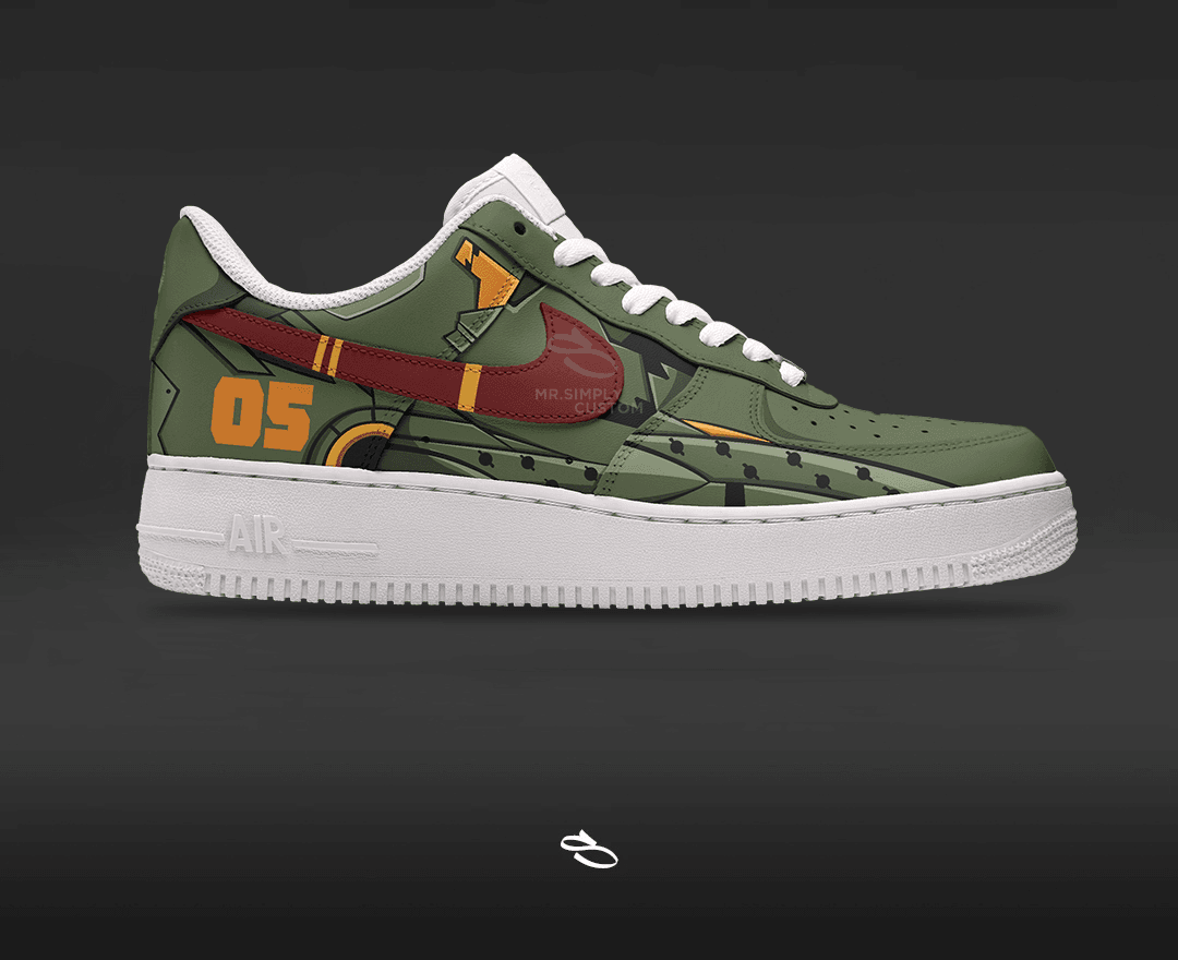 Introducing the Evangelion Unit-05 - a unique and stylish custom design of the classic Nike Air Force 1. With intricate details inspired by the popular anime series, this shoe is sure to make a statement. Enjoy the comfort and functionality of Nike while proudly displaying Evangelion Unit-05.