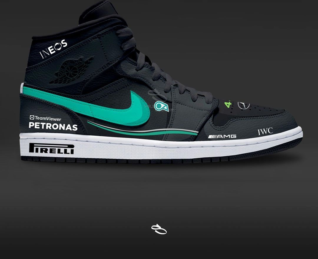 Introducing the F1 MERCEDES PETRONAS - a unique and stylish custom design of the classic Dunk low & Air Jordan 1. With intricate details inspired by the popular F1 LIVERY, this shoe is sure to make a statement. Enjoy the comfort and functionality of Nike while proudly displaying F1 MERCEDES PETRONAS.