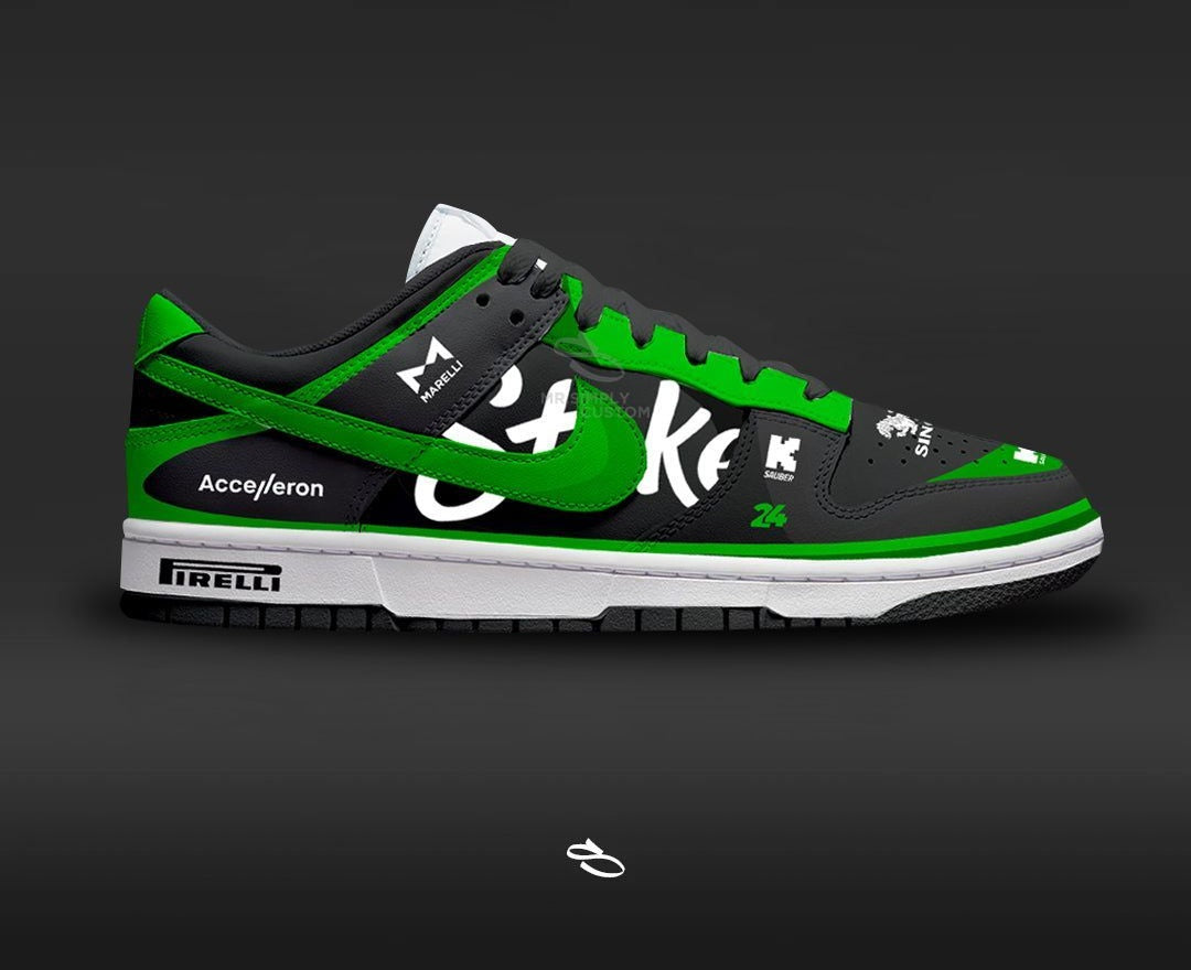 Introducing the F1 SAUBER SKATE - a unique and stylish custom design of the classic Dunk low & Air Jordan 1. With intricate details inspired by the popular F1 LIVERY, this shoe is sure to make a statement. Enjoy the comfort and functionality of Nike while proudly displaying F1 SAUBER SKATE.