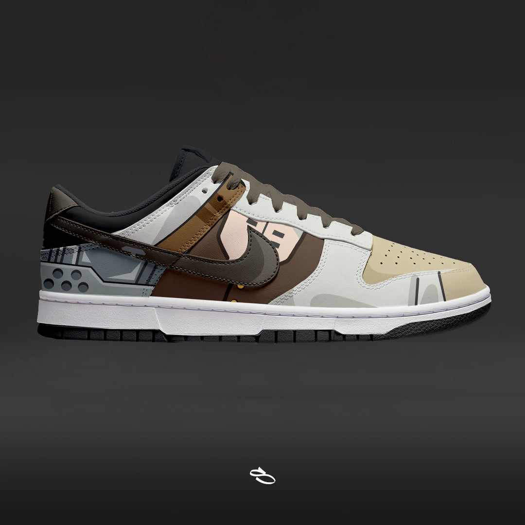 Introducing the Cyberpunk - a unique and stylish custom design of the classic Nike Air Force 1. With intricate details inspired by the popular franchise, this shoe is sure to make a statement. Enjoy the comfort and functionality of Nike while proudly displaying - Cyberpunk.