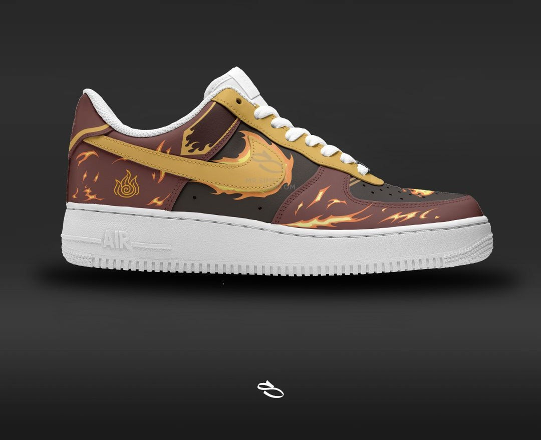 Introducing the Fire Nation Avatar The legend of Aang Air Force 1 - a unique and stylish custom design of the classic Nike Air Force 1. With intricate details inspired by the popular anime series, this shoe is sure to make a statement. Enjoy the comfort and functionality of Nike while proudly displaying Fire Nation Avatar The legend of Aang.