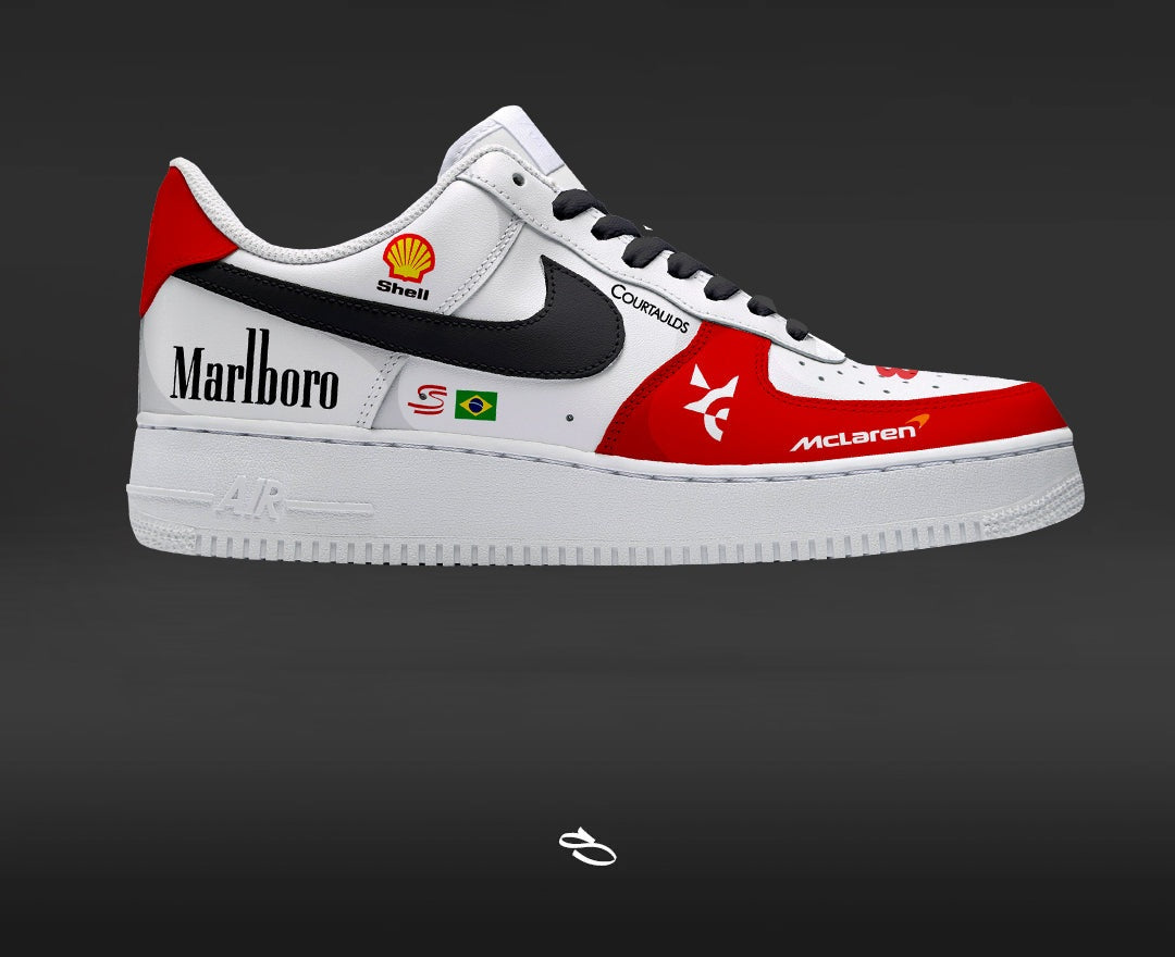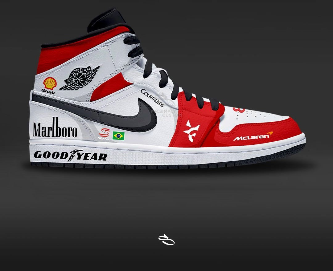 Introducing the F1 ARYTON SENNA - a unique and stylish custom design of the classic Dunk low & Air Jordan 1. With intricate details inspired by the popular F1 LIVERY, this shoe is sure to make a statement. Enjoy the comfort and functionality of Nike while proudly displaying F1 ARYTON SENNA