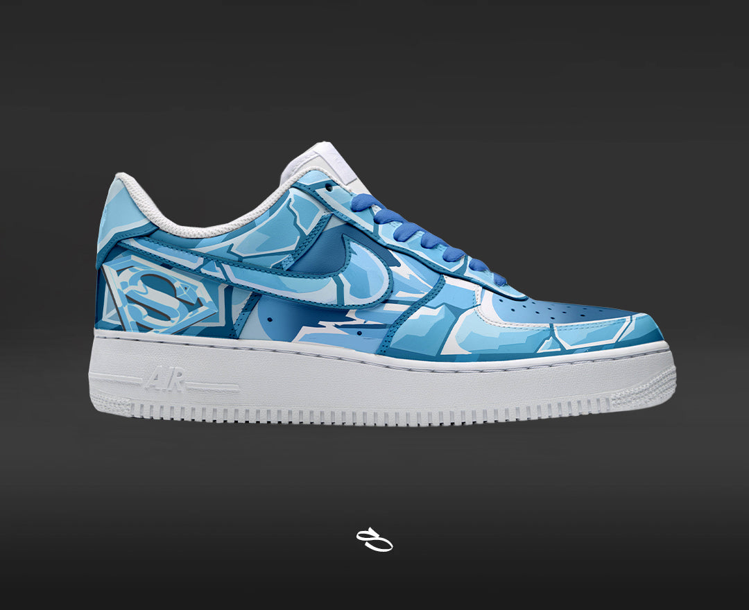 Introducing the Superman collection - a unique and stylish custom design of the classic Nike Air Force 1. With intricate details inspired by the popular franchise, this shoe is sure to make a statement. Enjoy the comfort and functionality of Nike while proudly displaying Superman collection.