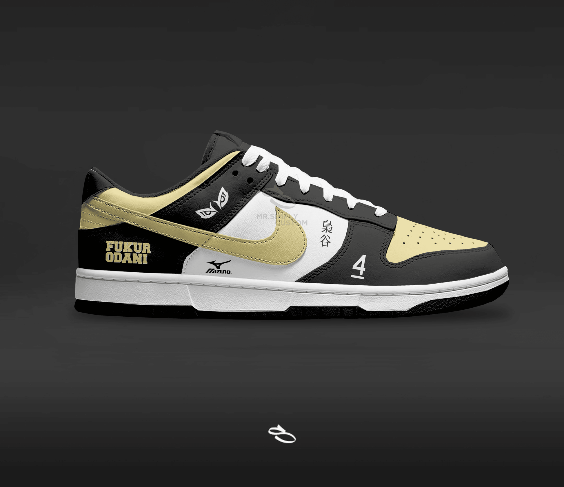 Introducing the Haikyuu Shoes Custom Collection - a unique and stylish custom design of the classic Dunk low. With intricate details inspired by the popular anime series, this shoe is sure to make a statement. Enjoy the comfort and functionality of Nike while proudly displaying Fukurodani Haikyuu.