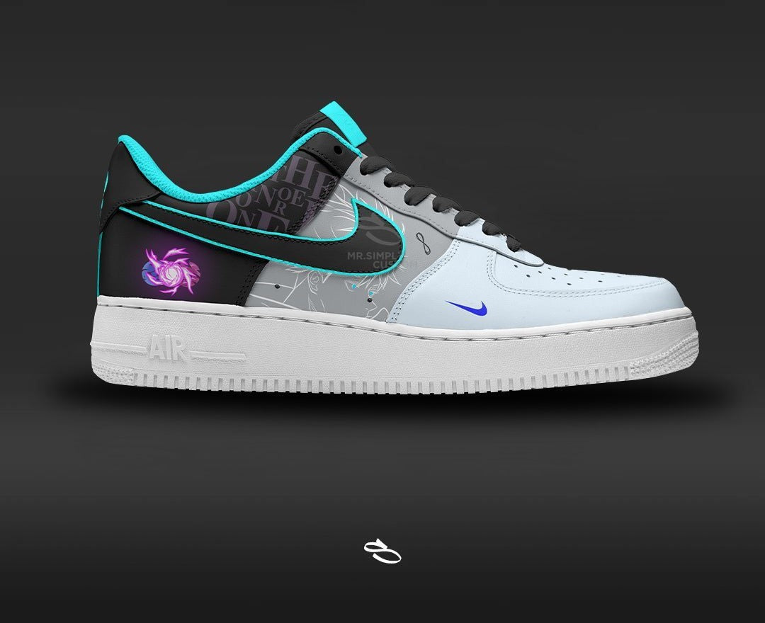 Introducing the Gojo Satoru Jujutsu Kaisen - a unique and stylish custom design of the classic Nike Air Force 1, Dunk Low, & Air jordan. With intricate details inspired by the popular anime series, this shoe is sure to make a statement. Enjoy the comfort and functionality of Nike while proudly displaying Gojo Satoru Jujutsu Kaisen.