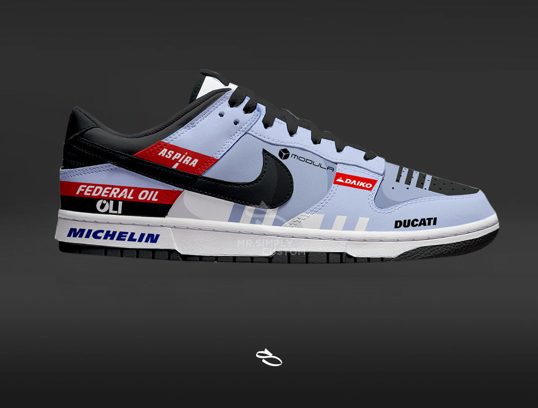 Introducing the MOTO GP - a unique and stylish custom design of the classic Dunk low & Air Jordan 1. With intricate details inspired by the popular MOTO GP TEAM, this shoe is sure to make a statement. Enjoy the comfort and functionality of Nike while proudly displaying MOTO GP.