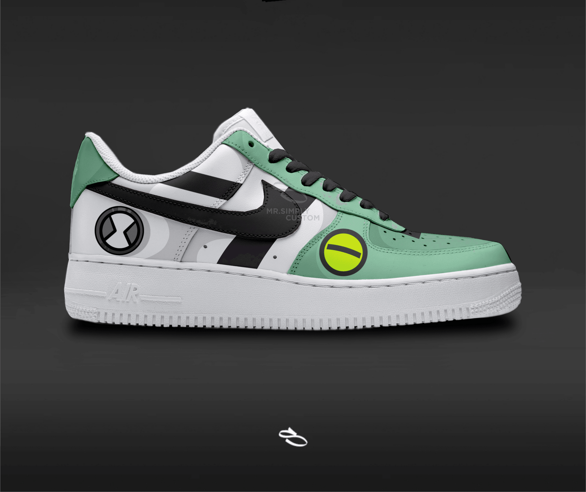 Introducing the Ben 10 Collection - a unique and stylish custom design of the classic Air Force 1. With intricate details inspired by the popular franchise series, this shoe is sure to make a statement. Enjoy the comfort and functionality of Nike while proudly displaying Grey Matter Ben 10.
