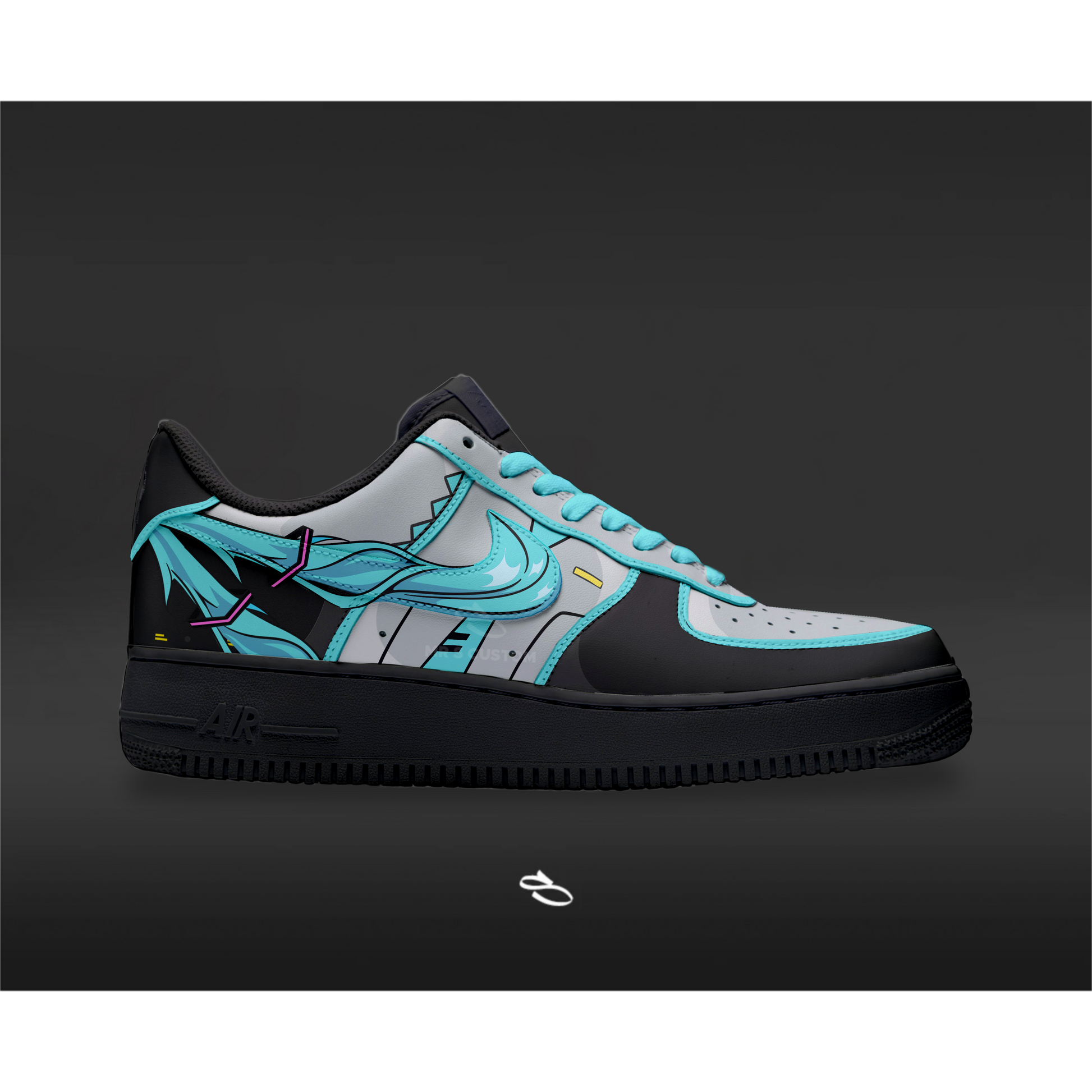 Introducing the Hatsune Miku - a unique and stylish custom design of the classic Nike Air Force 1. With intricate details inspired by the popular anime series, this shoe is sure to make a statement. Enjoy the comfort and functionality of Nike while proudly displaying Hatsune Miku.