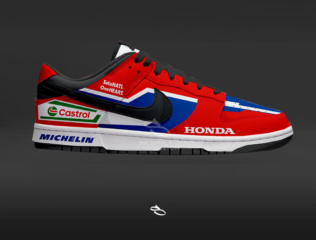 Introducing the MOTO GP - a unique and stylish custom design of the classic Dunk low & Air Jordan 1. With intricate details inspired by the popular MOTO GP TEAM, this shoe is sure to make a statement. Enjoy the comfort and functionality of Nike while proudly displaying MOTO GP.