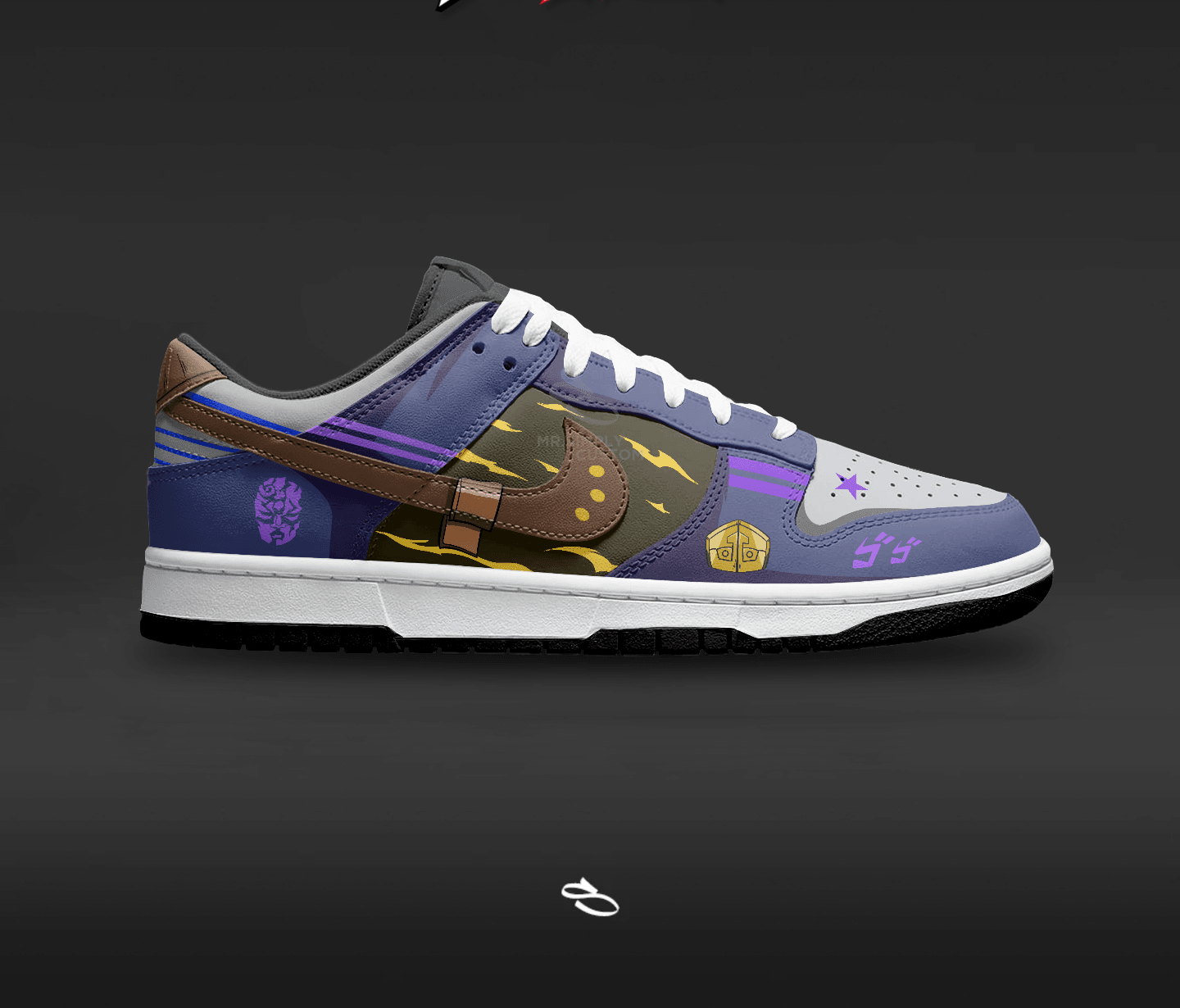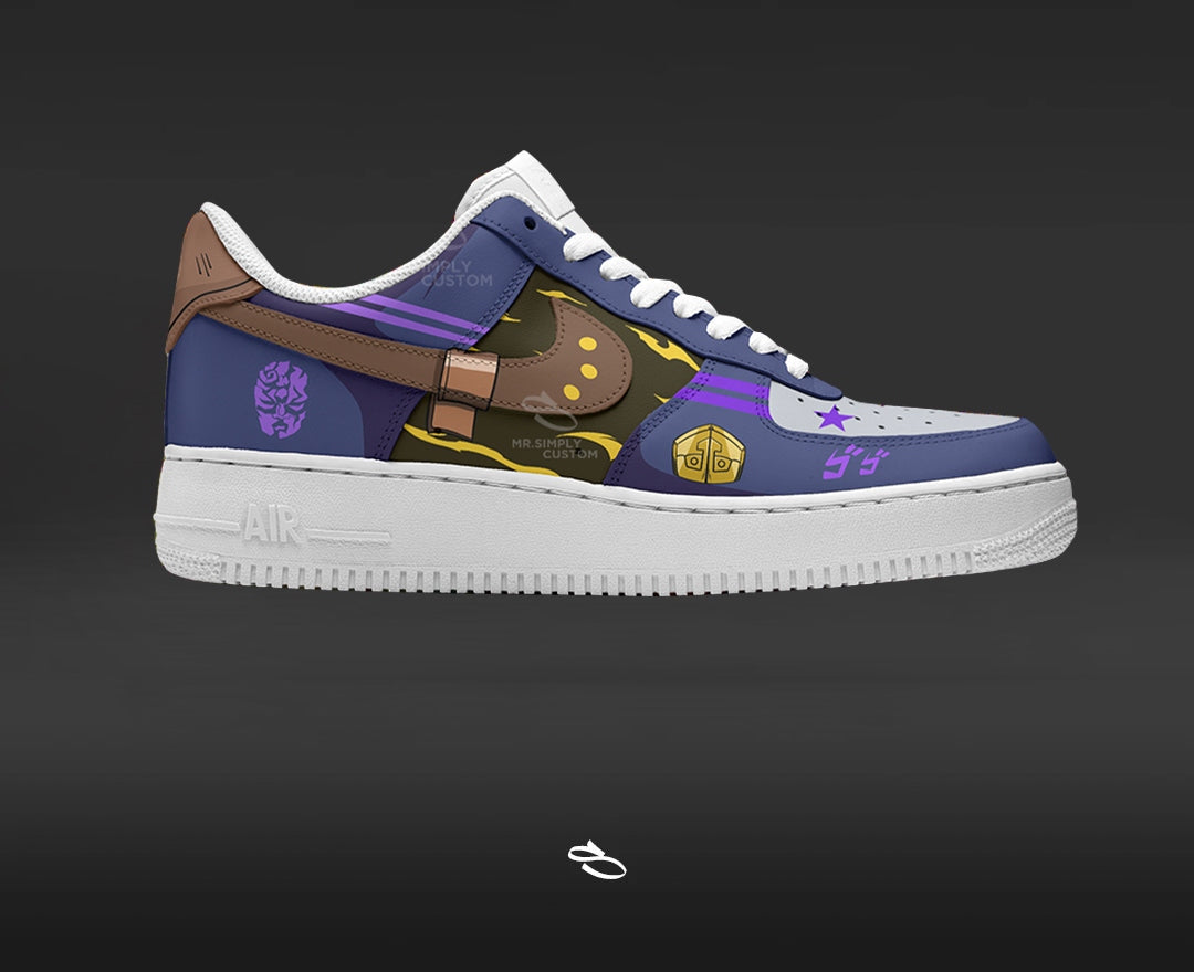 Introducing the JoJo Bizzare Adventure - a unique and stylish custom design of the classic Dunk low. With intricate details inspired by the popular anime, This shoe is sure to make a statement. Enjoy the comfort and functionality of Nike while proudly displaying JoJo Bizzare Adventure.