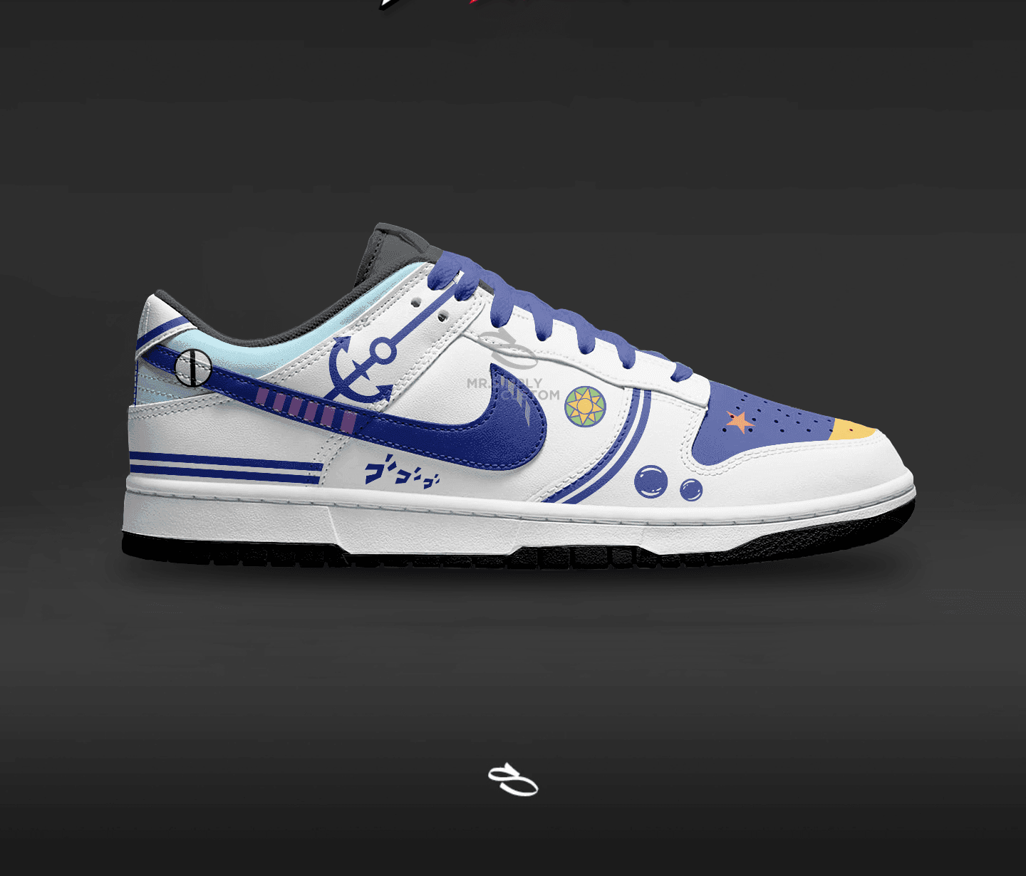 Introducing the JoJo Bizzare Adventure - a unique and stylish custom design of the classic Dunk low. With intricate details inspired by the popular anime, This shoe is sure to make a statement. Enjoy the comfort and functionality of Nike while proudly displaying JoJo Bizzare Adventure.