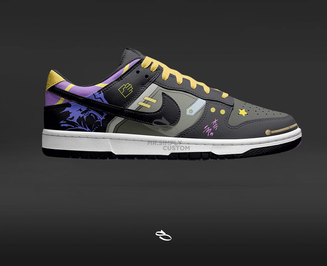 Introducing the JoJo Bizzare Adventure - a unique and stylish custom design of the classic Dunk low. With intricate details inspired by the popular anime, This shoe is sure to make a statement. Enjoy the comfort and functionality of Nike while proudly displaying JoJo Bizzare Adventure.