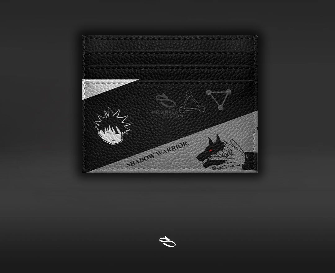 Introducing the JUJUTSU KAISEN CARD HOLDER - MEGUMI. a unique and stylish custom design of the classic card holder. With intricate details inspired by the popular anime series, this card holder is sure to make a statement. Enjoy the comfort and functionality of Nike while proudly displaying JUJUTSU KAISEN CARD HOLDER - MEGUMI.
