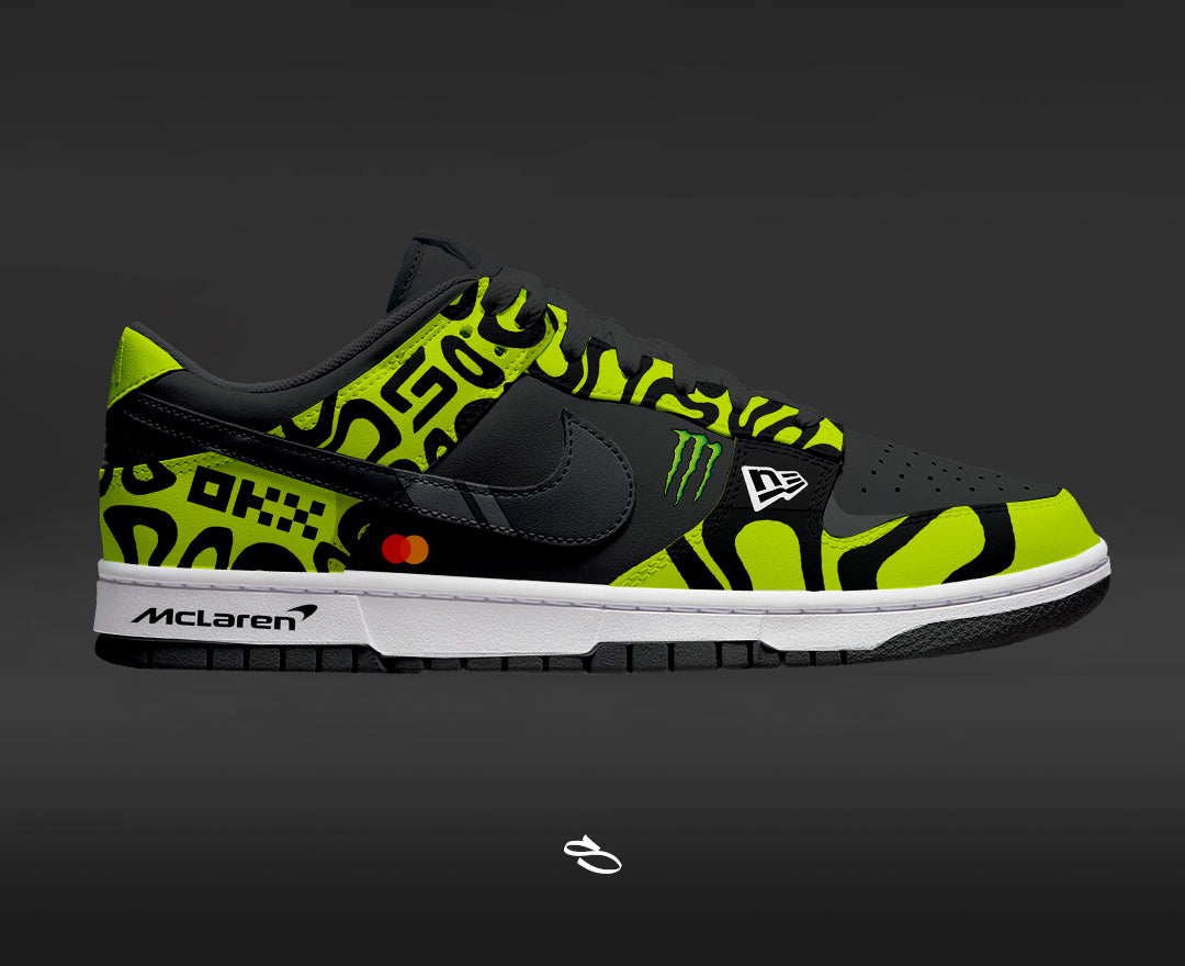 Introducing the APX GP - a unique and stylish custom design of the classic Dunk low & Air Jordan 1. With intricate details inspired by the popular F1 LIVERY, this shoe is sure to make a statement. Enjoy the comfort and functionality of Nike while proudly displaying APX GP.