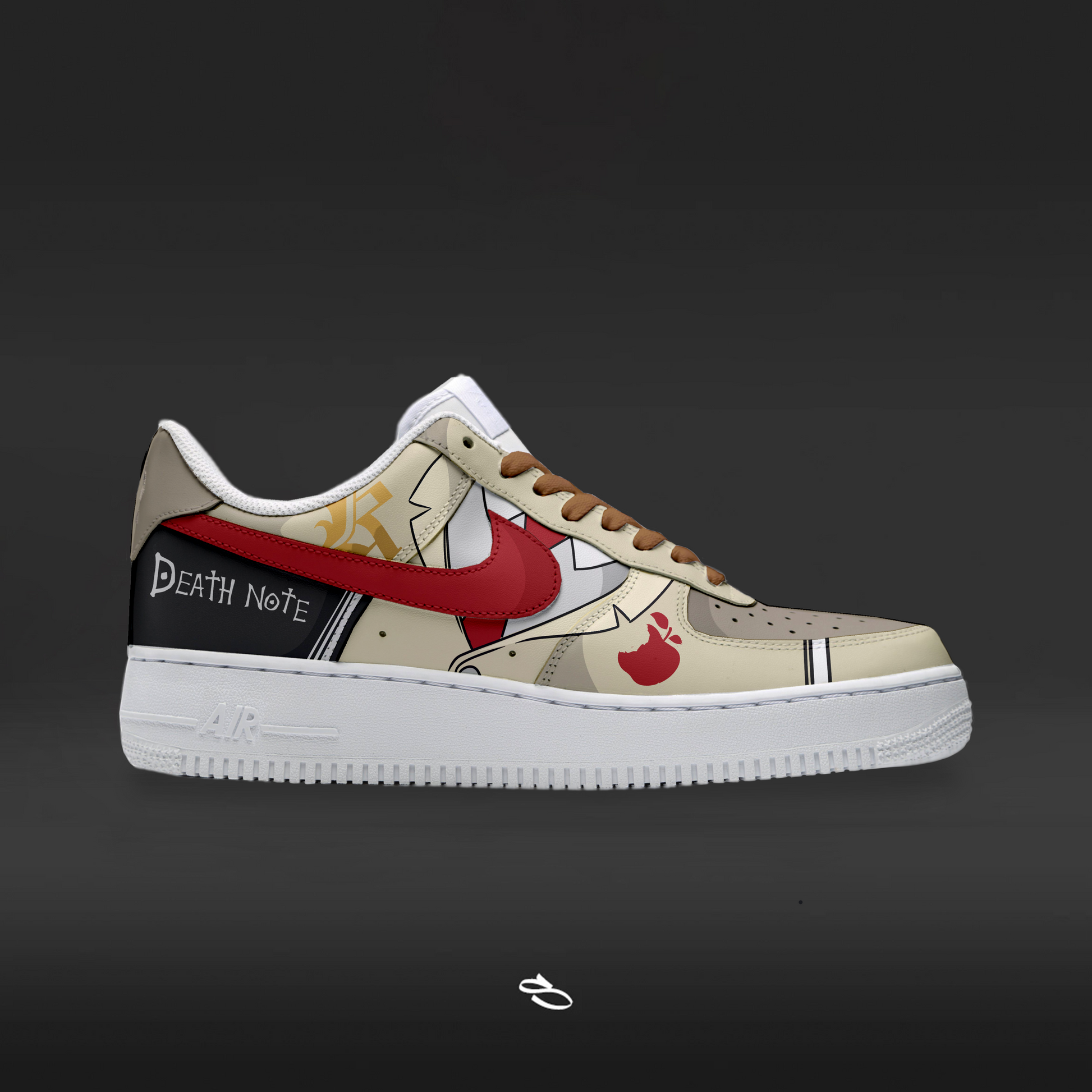 Introducing the Death Note collections - a unique and stylish custom design of the classic Nike. With intricate details inspired by the popular series, this shoe is sure to make a statement. Enjoy the comfort and functionality of Nike while proudly displaying Death Note.