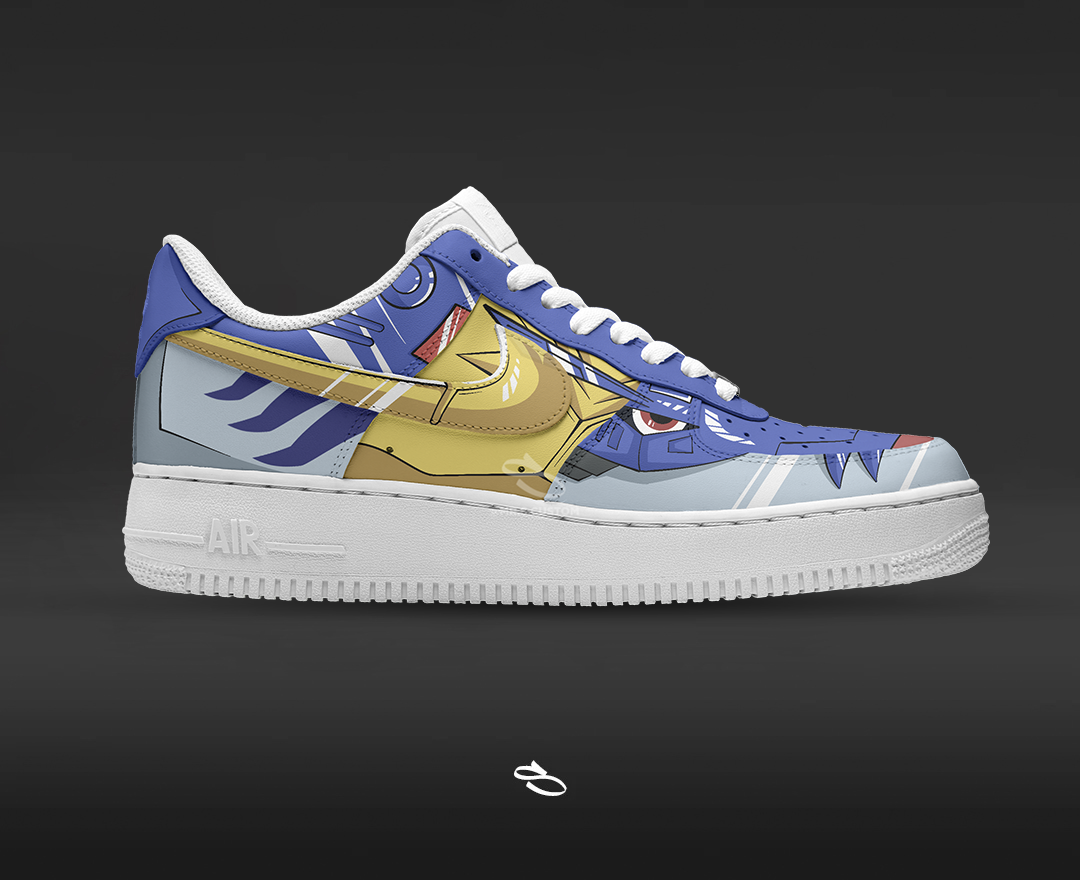 Introducing the Digimon - a unique and stylish custom design of the classic Nike Air Force 1. With intricate details inspired by the popular anime series, this shoe is sure to make a statement. Enjoy the comfort and functionality of Nike while proudly displaying Digimon.
