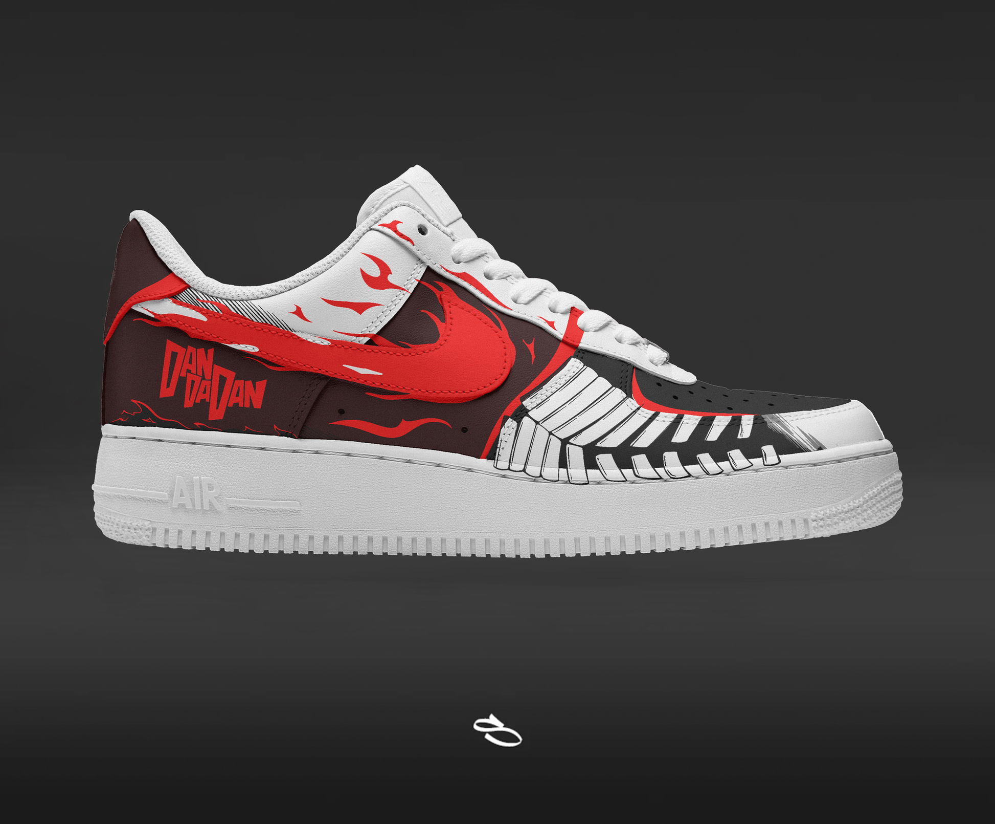 Introducing the Dandadan- a unique and stylish custom design of the classic Nike Air Force 1. With intricate details inspired by the popular anime series, this shoe is sure to make a statement. Enjoy the comfort and functionality of Nike while proudly displaying Dandadan.