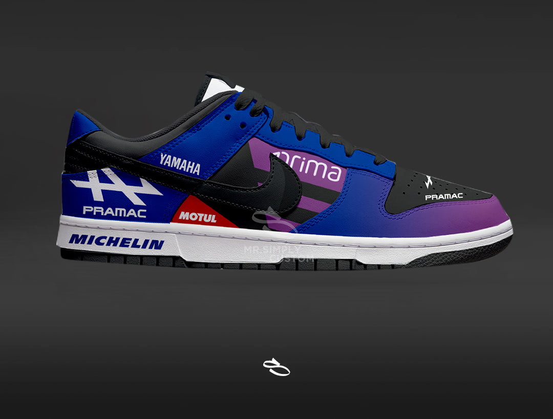 Introducing the MOTO GP - a unique and stylish custom design of the classic Dunk low & Air Jordan 1. With intricate details inspired by the popular MOTO GP TEAM, this shoe is sure to make a statement. Enjoy the comfort and functionality of Nike while proudly displaying MOTO GP.