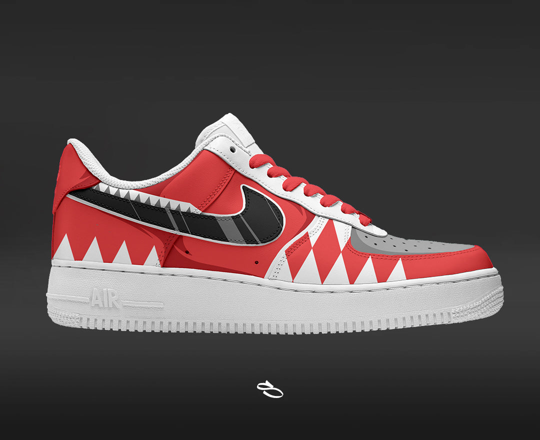 Introducing the Mighty Morphin Power Ranger - a unique and stylish custom design of the classic Nike Air Force 1. With intricate details inspired by the popular series, this shoe is sure to make a statement. Enjoy the comfort and functionality of Nike while proudly displaying Mighty Morphin Power Ranger
