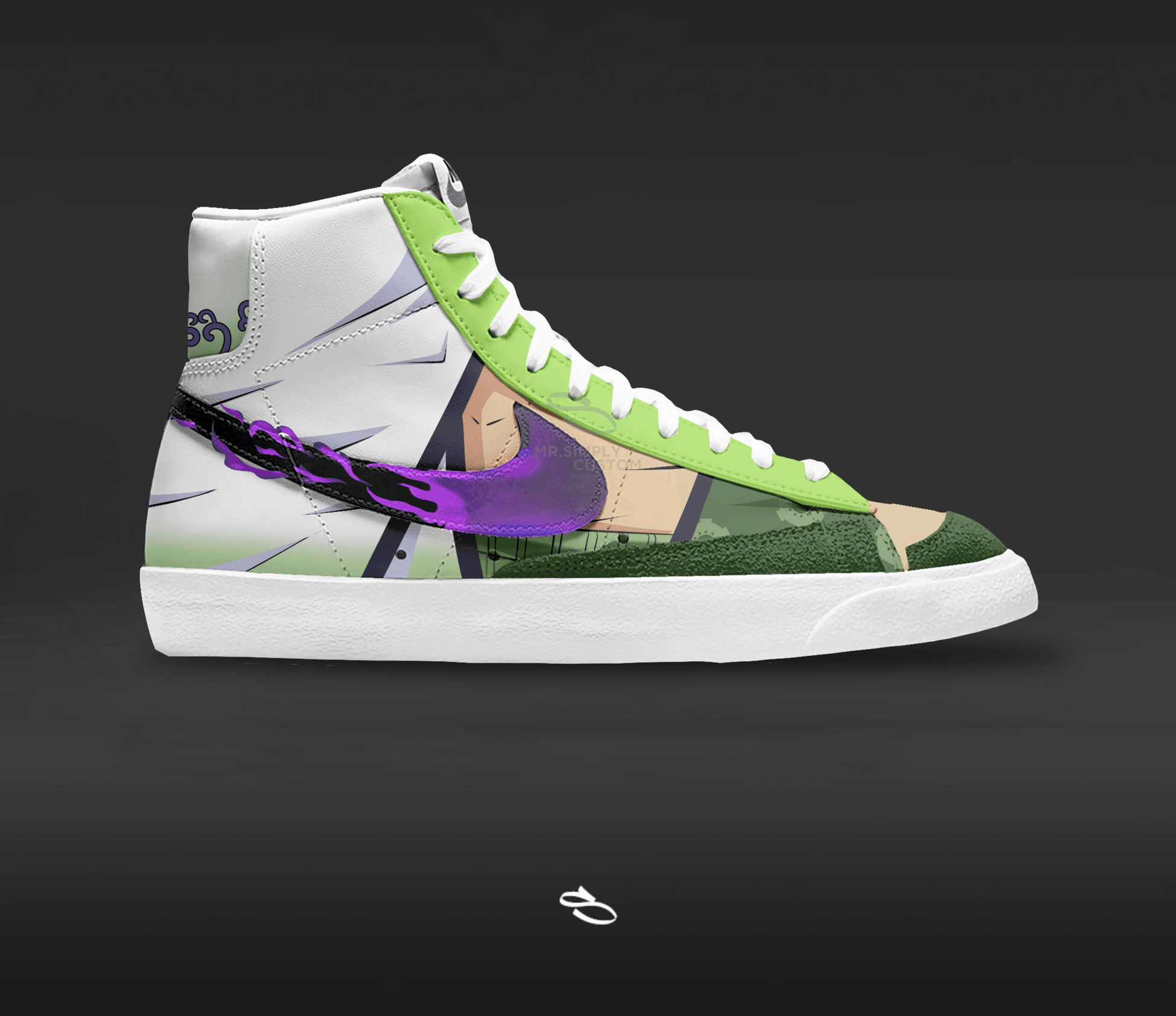 Introducing the Roronoa Zoro One Piece - a unique and stylish custom design of the classic Nike Air Force 1, Air Jordan 1, & Blazer. With intricate details inspired by the popular One Piece Anime, this shoe is sure to make a statement. Enjoy the comfort and functionality of Nike while proudly displaying Roronoa Zoro One Piece.
