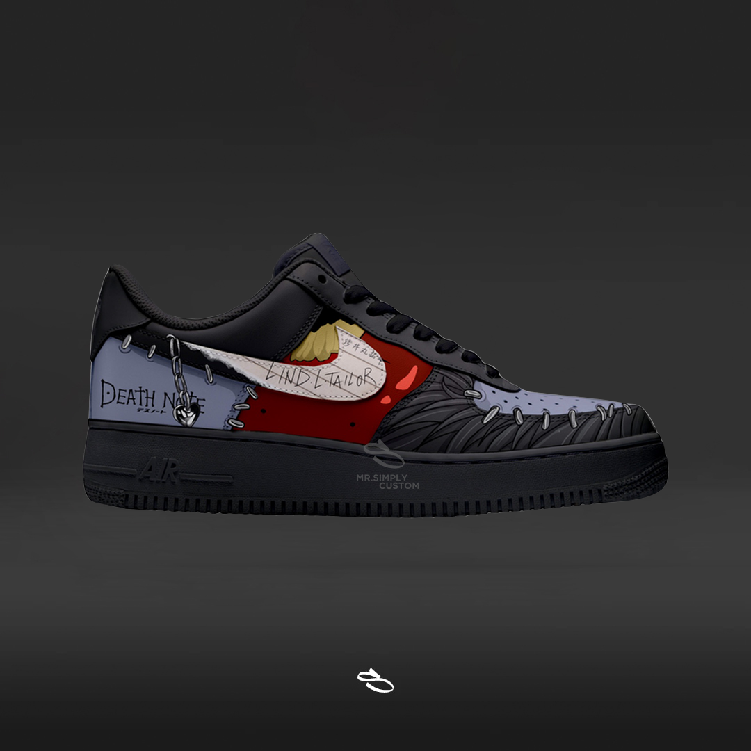 Introducing the Death Note collections - a unique and stylish custom design of the classic Nike. With intricate details inspired by the popular series, this shoe is sure to make a statement. Enjoy the comfort and functionality of Nike while proudly displaying Death Note.
