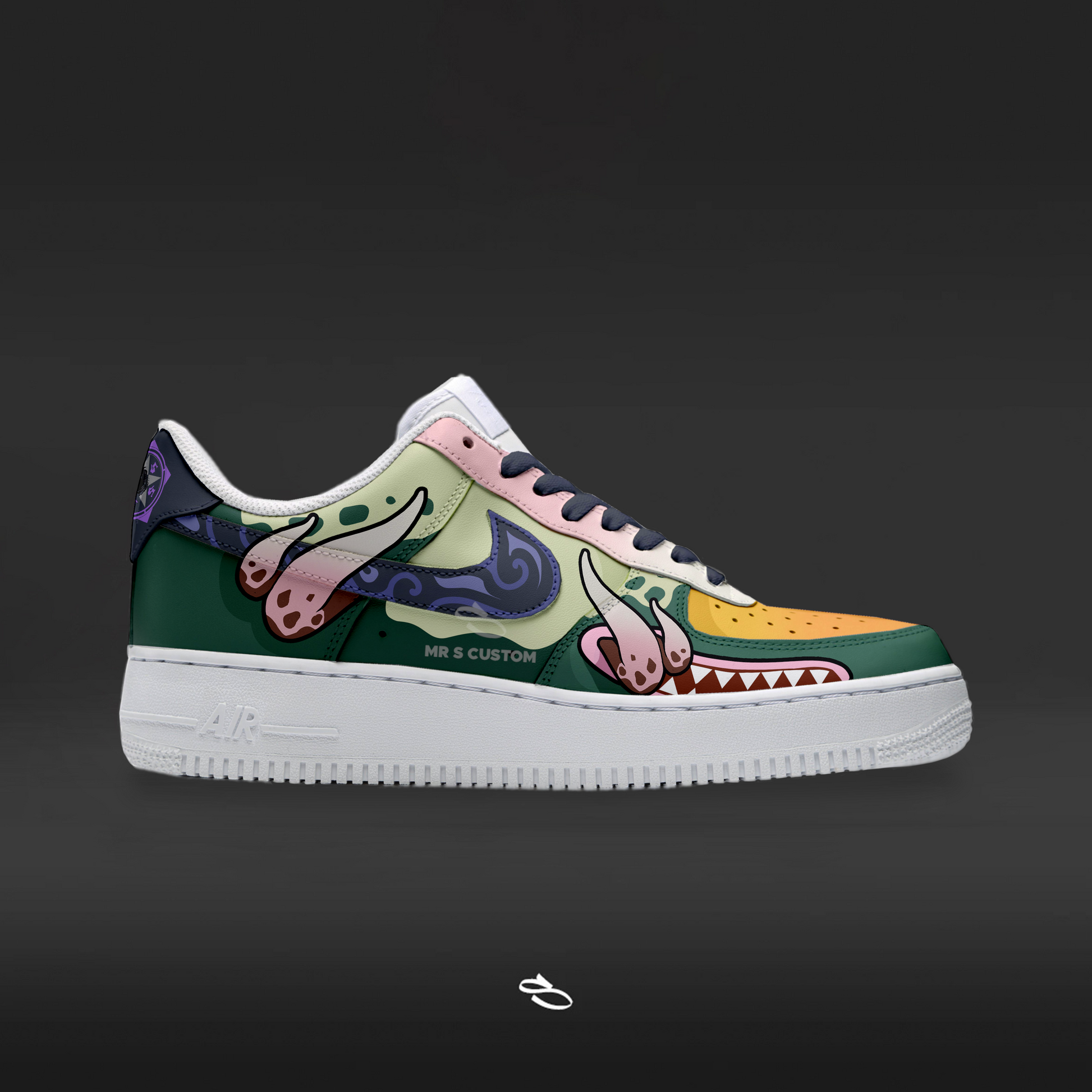 Introducing the One Piece - a unique and stylish custom design of the classic Nike Air Force 1. With intricate details inspired by the popular franchise, this shoe is sure to make a statement. Enjoy the comfort and functionality of Nike while proudly displaying One Piece.