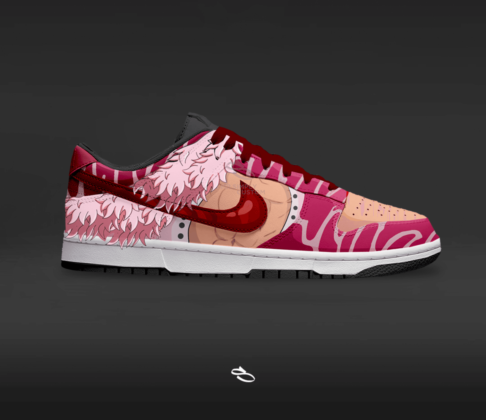 Introducing the Donquixote Doflamingo One Piece - a unique and stylish custom design of the classic Nike Dunk. With intricate details inspired by the popular One Piece Anime, this shoe is sure to make a statement. Enjoy the comfort and functionality of Nike while proudly displaying Donquixote Doflamingo One Piece.
