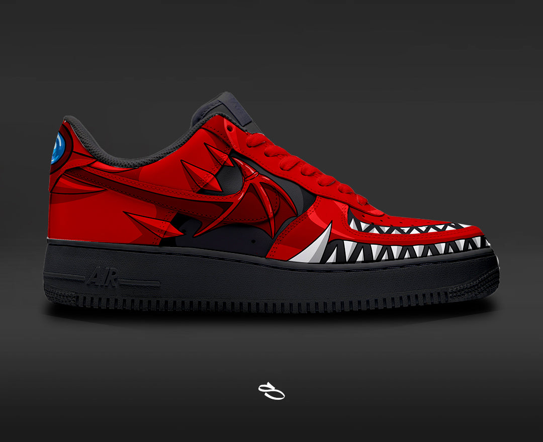 Introducing the Yu Gi Oh - a unique and stylish custom design of the classic Nike Air Force 1. With intricate details inspired by the popular anime series, this shoe is sure to make a statement. Enjoy the comfort and functionality of Nike while proudly displaying Yu Gi Oh.