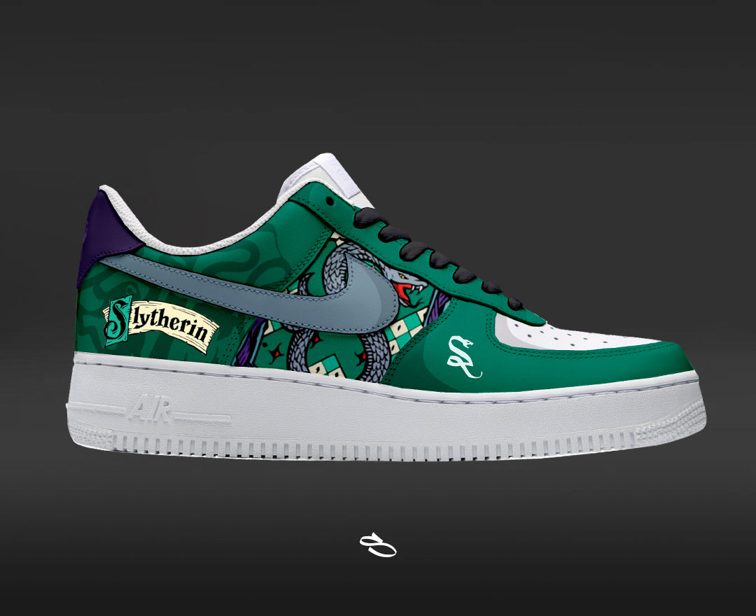 Introducing the Harry Potter Collections - a unique and stylish custom design of the classic Nike Air Force 1. With intricate details inspired by the popular series, this shoe is sure to make a statement. Enjoy the comfort and functionality of Nike while proudly displaying Harry Potter Collections.
