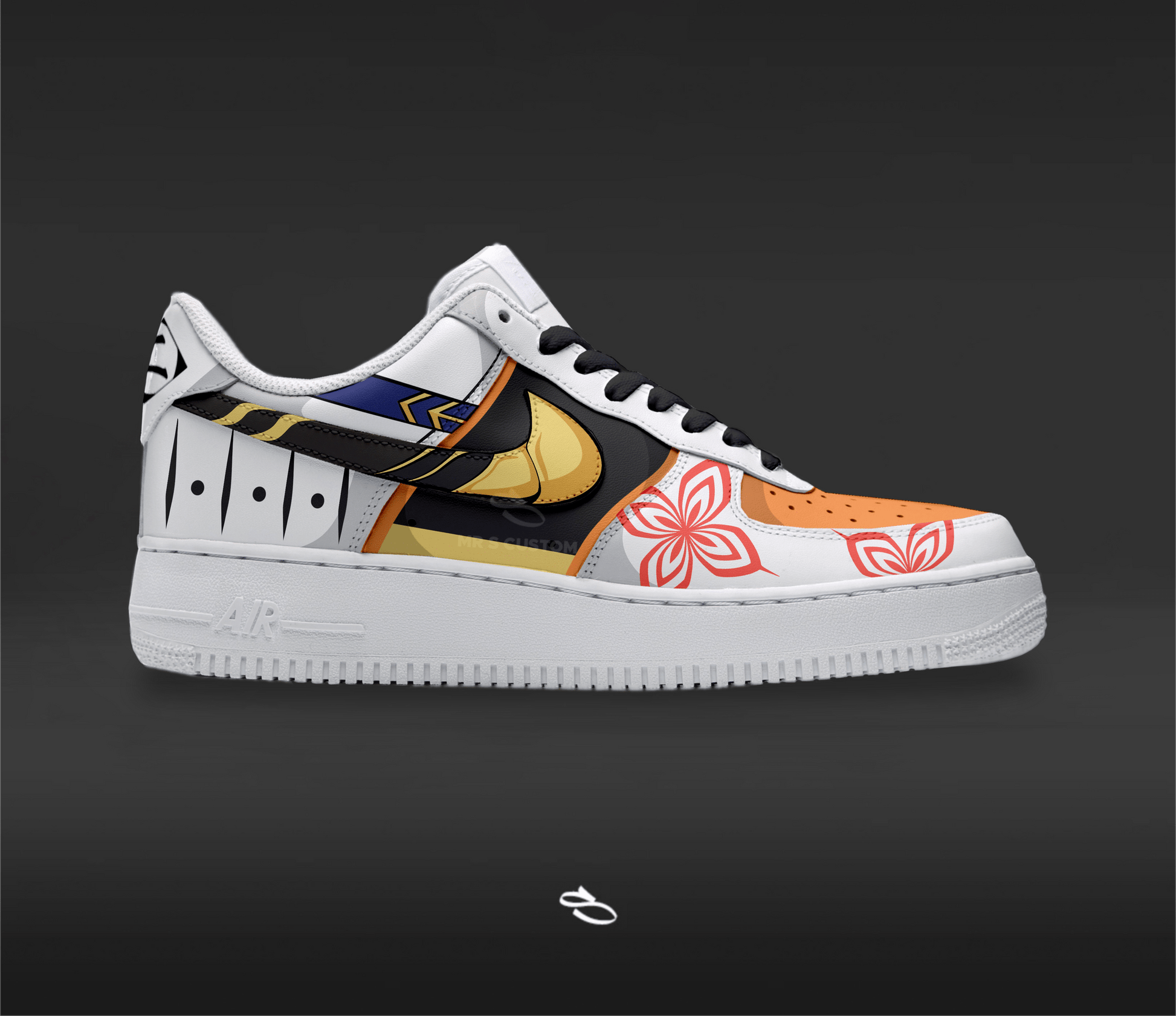 Introducing the Bleach - a unique and stylish custom design of the classic Nike Air Force 1. With intricate details inspired by the popular anime series, this shoe is sure to make a statement. Enjoy the comfort and functionality of Nike while proudly displaying Bleach.