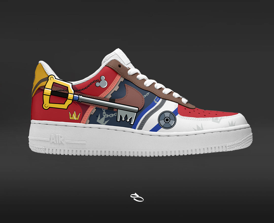 Introducing the Kingdom Hearts - a unique and stylish custom design of the classic Nike Air Force 1. With intricate details inspired by the popular series, this shoe is sure to make a statement. Enjoy the comfort and functionality of Nike while proudly displaying Kingdom Hearts