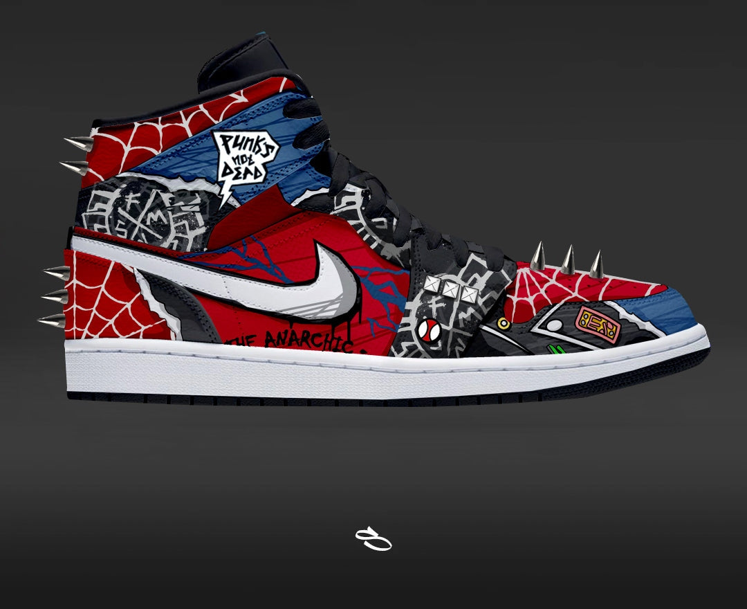Introducing the Spider-Man Noir Spider-Verse - a unique and stylish custom design of the classic Nike Air Jordan 1, Air Force 1, & Blazer. With intricate details inspired by the popular animation movie, this shoe is sure to make a statement. Enjoy the comfort and functionality of Nike while proudly displaying Spider-Man Noir Spider-Verse.