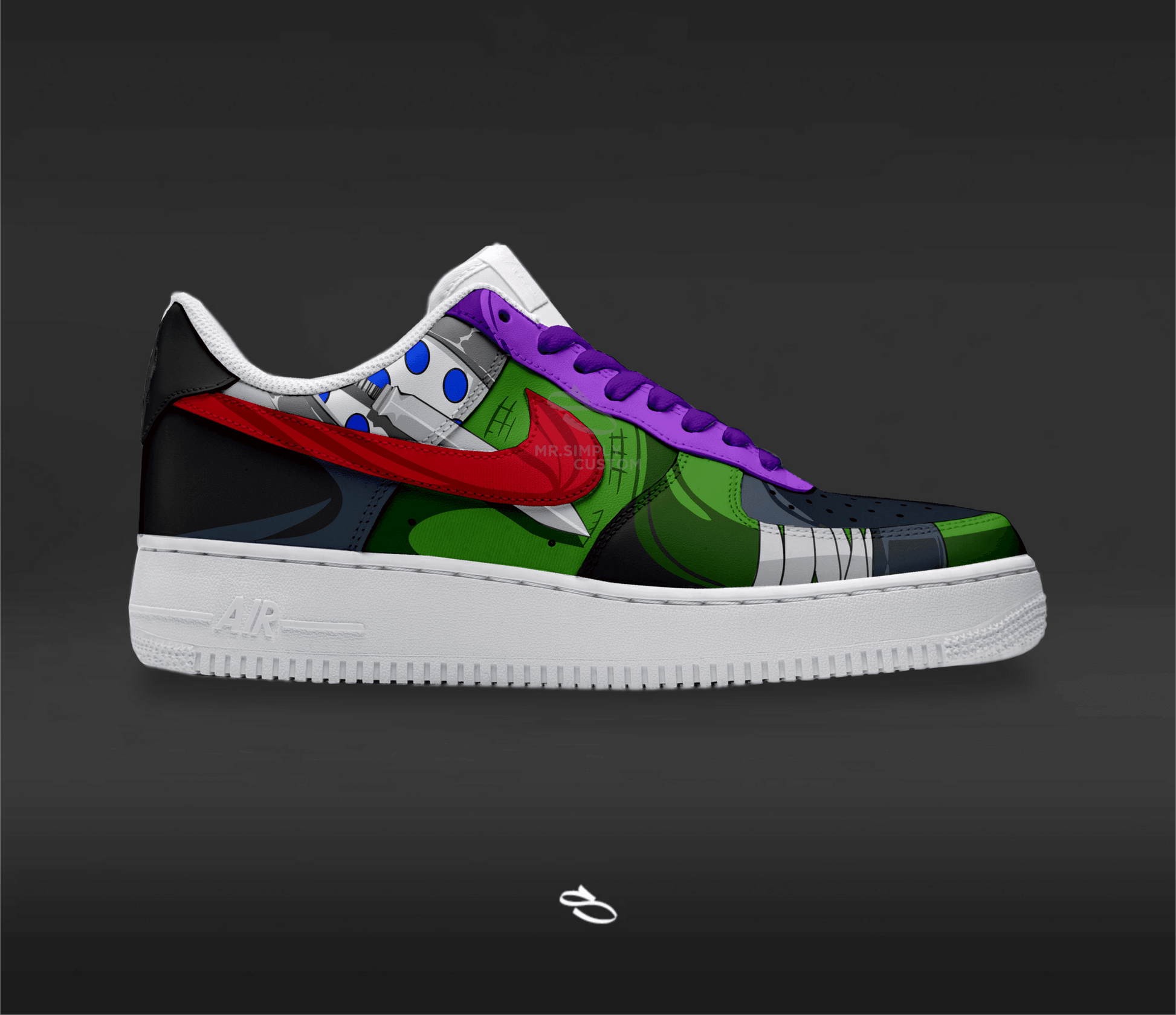 Introducing the Spinner My Hero Academia - a unique and stylish custom design of the classic Nike Air Force 1. With intricate details inspired by the popular anime series, this shoe is sure to make a statement. Enjoy the comfort and functionality of Nike while proudly displaying Spinner My Hero Academia.